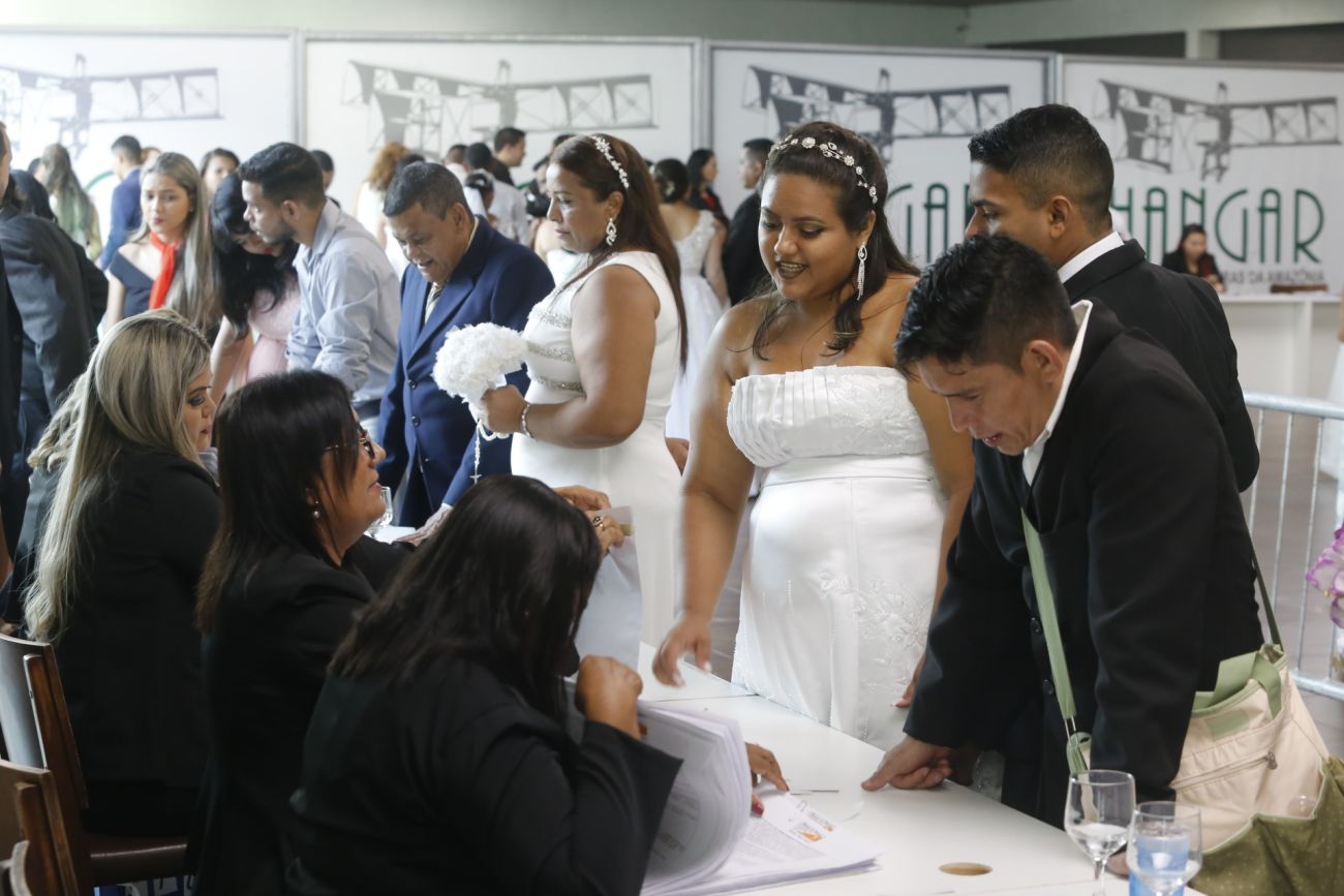O casamento comunitário foi promovido pelo Estado no HangarUm casamento comunitário, promovido pelo Governo do Pará, por meio da Secretaria de Estado de Justiça e Direitos Humanos (Sejudh) e Fundação Parapaz, teve um número recorde de inscritos. Na noite desta sexta-feira (20), mil casais selaram a união civil no Hangar - Centro de Convenções e Feiras da Amazônia, em Belém, diante de familiares e amigos. O governador Helder Barbalho e a primeira-dama, Daniela Barbalho, presenciaram a celebração, formalizada pela juíza de paz Rebeca Guedes, do Cartório Guedes Oliveira.