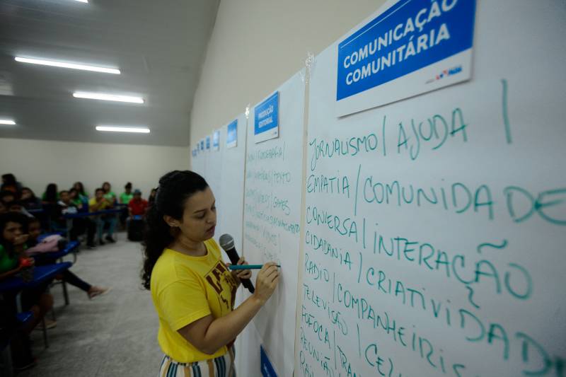 Emanuelle Yasmin de França de Souza-Nesse primeiro contato com a comunidade do Icuí-Guajará, a Secom apresenta suas 17 áreas de linguagem aos alunos. Em uma dinâmica simples, os participantes escolheram quais temas desejam receber nas oficinas que serão promovidas pela Secretaria ao longo do ano. Fotografia, desenho e jornalismo foram as mais votadas na Escola Maria de Nazaré Marques Rios.