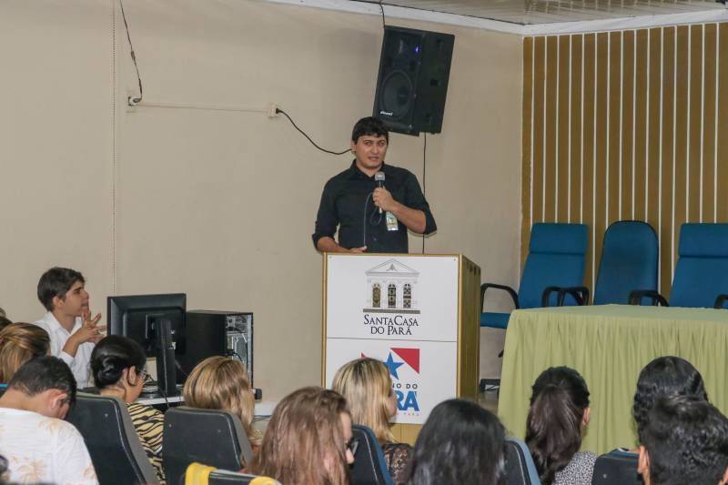 Estudantes de várias instituições de ensino superior e técnico lotaram o auditório da Fundação Santa Casa, nesta quinta-feira (12), para receberem orientações sobre as normas e rotinas adotadas no hospital e que devem ser seguidas durante o estágio curricular dos alunos. Entre as informações repassadas estão a identificação com crachá, o horário dos estágios, a política do adorno zero (não usar jóias, bijouterias, relógios etc), além das metas de segurança do paciente.