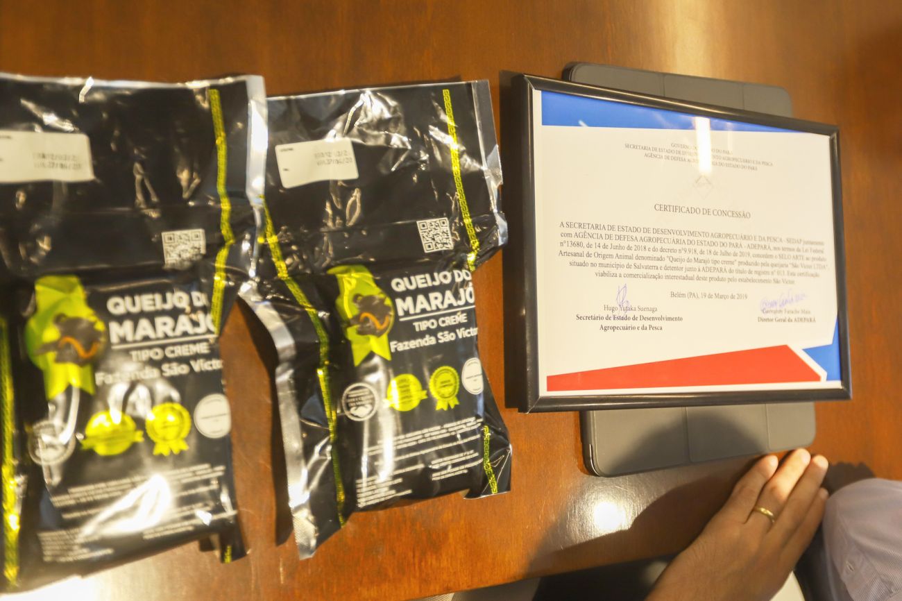 O Selo Arte foi entregue pelo governador Helder Barbalho no dia 20 deste mês, no Palácio de Governo para os proprietário da Fazenda São Victor, Marcus e Cecília Pinheiro. Os titulares da Sedap, Hugo Suenaga, e da Adepará, Geovanny Farache, acompanharam a entrega, além da diretora agropecuária da Sedap, Brenda Caldas, e do presidente da Federação da Agricultura do Pará (Faepa), Carlos Xavier.