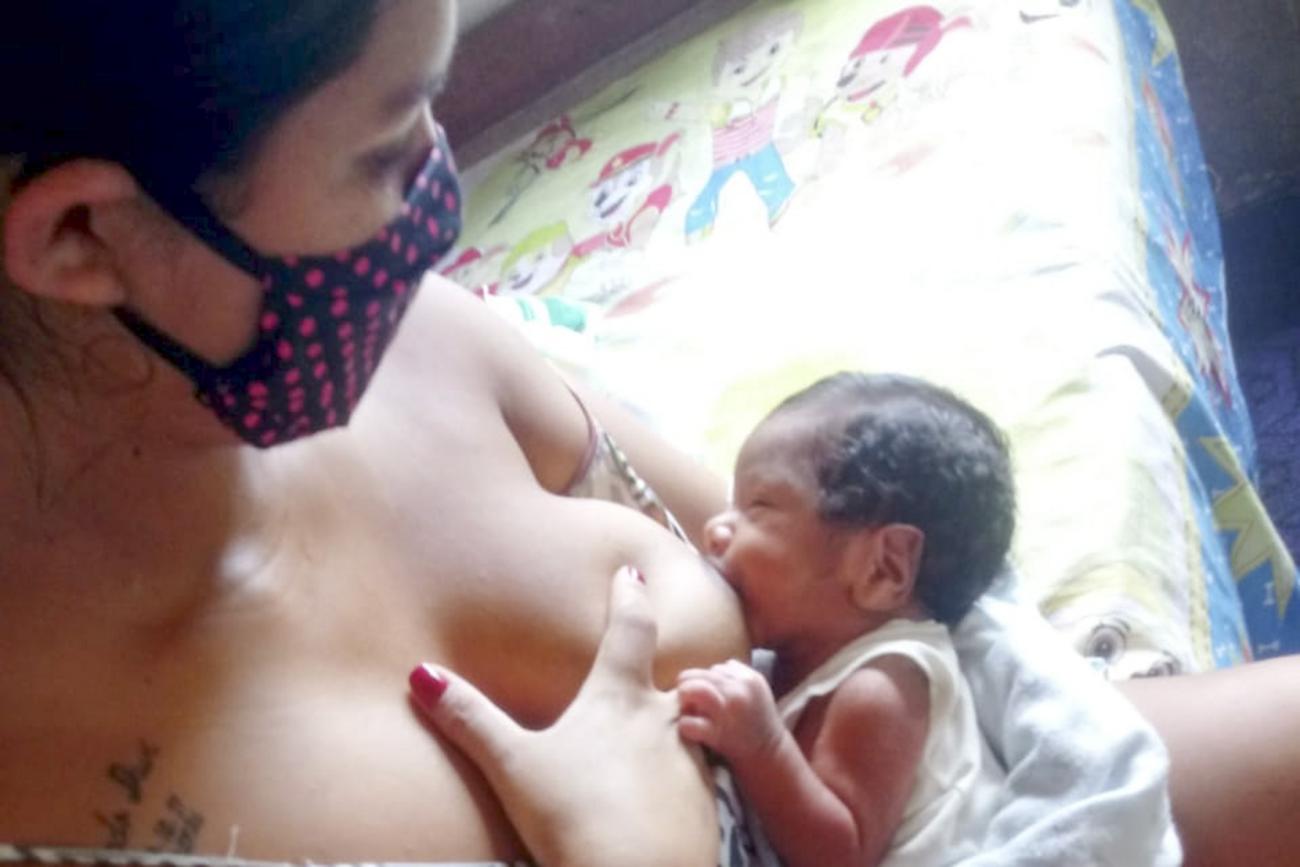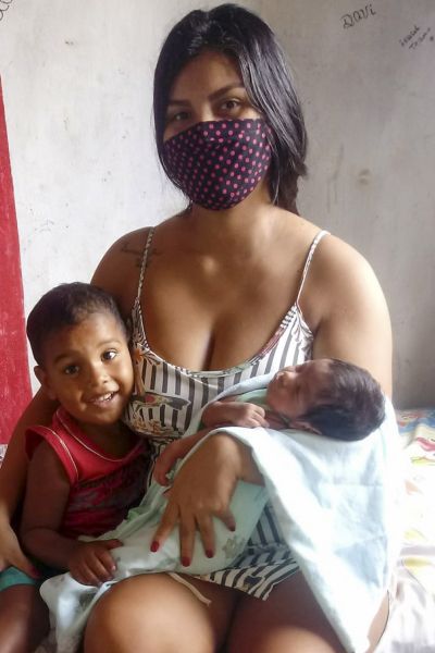 Daiane mantém os cuidados rigorosos para proteger os filhosExemplo - Daiane Oliveira de Andrade, de 21 anos, de Tracauateua, teve covid-19 ao oito meses de gestação do Pedro Henrique, seu segundo filho. Ela começou a sentir dor no corpo, na garganta, tosse e febre. No dia 15 de abril o quadro se agravou e a grávida precisou ser internada na Santa Casa, onde ficou por oito dias, sendo três na UTI. No dia 18 de abril ela deu à luz ao pequeno Pedro, que também apresentou sintomas e ficou internado na UTI Neonatal por 10 dias.