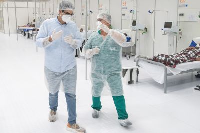 O Governador Helder Barbalho esteve no Hospital para acompanhar a montagem e instalação dos leitos, além de conversar com pacientes e profissionais que estão na linha de frente.