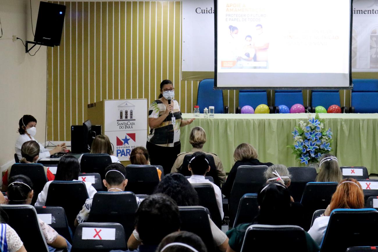 Servidores do hospital e do Corpo de Bombeiros na abertura do Agosto Dourado, defensor do aleitamento maternoA Fundação Santa Casa iniciou nesta quinta-feira (6) no auditório do hospital a programação Agosto Dourado, evento alusivo ao fortalecimento do aleitamento materno dentro e fora da instituição. No ato de abertura, a diretora Walda Valente, representou o presidente da Fundação Santa Casa, Bruno Carmona, e disse que a semana de aleitamento mundial tem um grau de importância grande por conta de que a Santa Casa é uma instituição que cuida da saúde das pessoas e tem um dos maiores bancos de leite humano da região Norte.