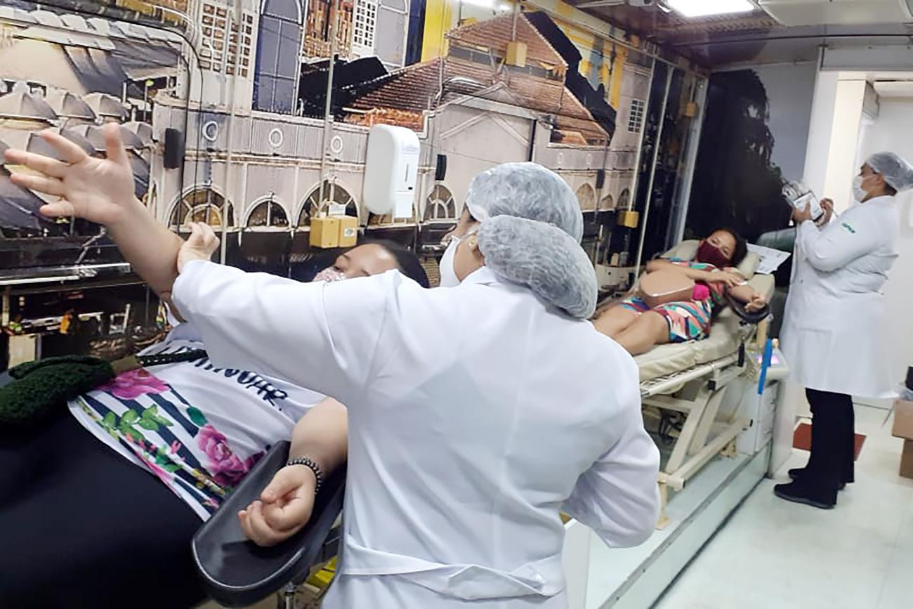 Moradores do distrito de Icoaraci fizeram fila para contribuir como voluntários com o estoque de sangue da Fundação Hemopa Durante o período em que as campanhas externas estiveram suspensas, a gestão da Fundação Hemopa providenciou a revitalização da unidade móvel. O veículo recebeu a higienização necessária para atender o voluntariado de forma ainda mais segura. A unidade garante o atendimento de até quatro doadores por vez.