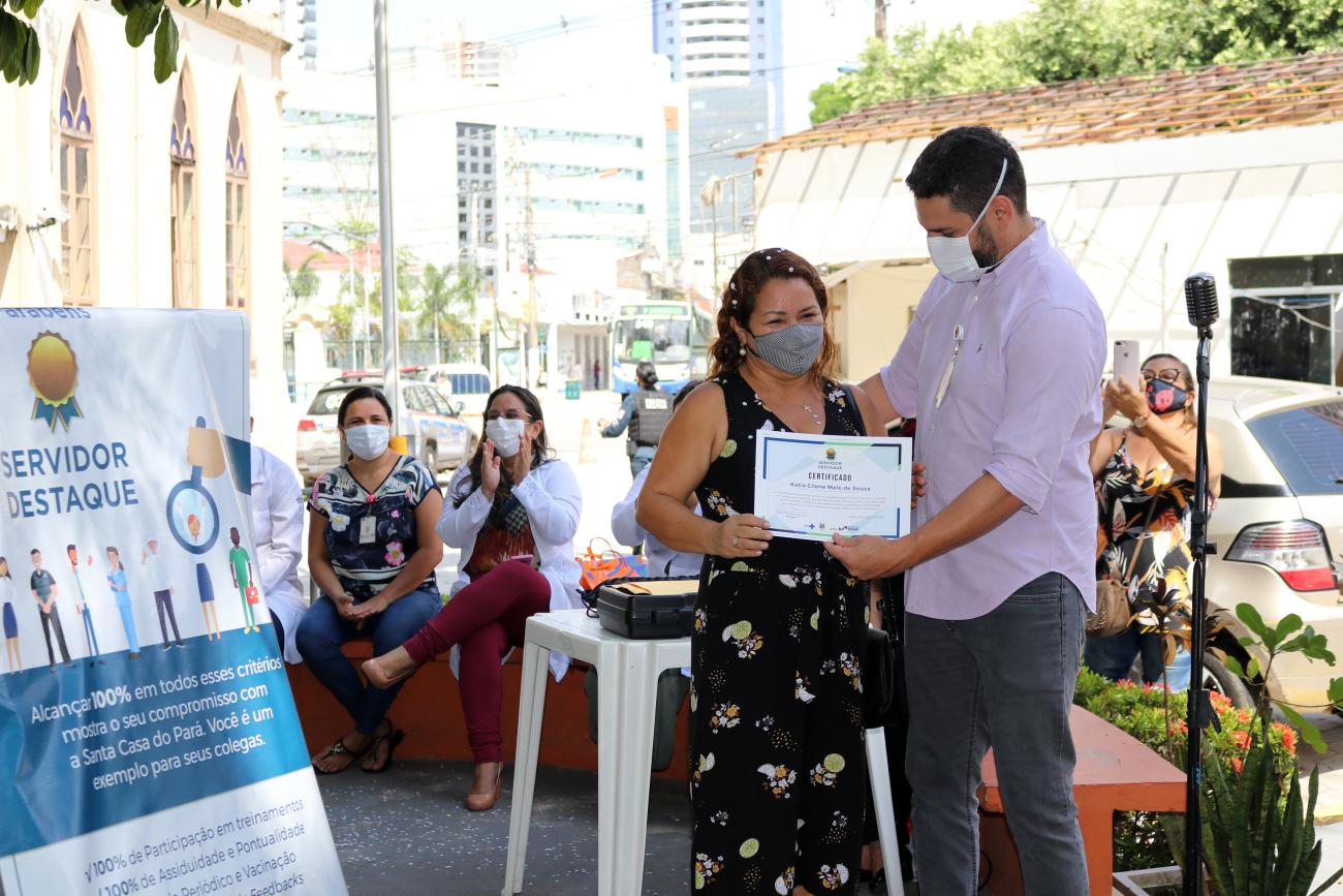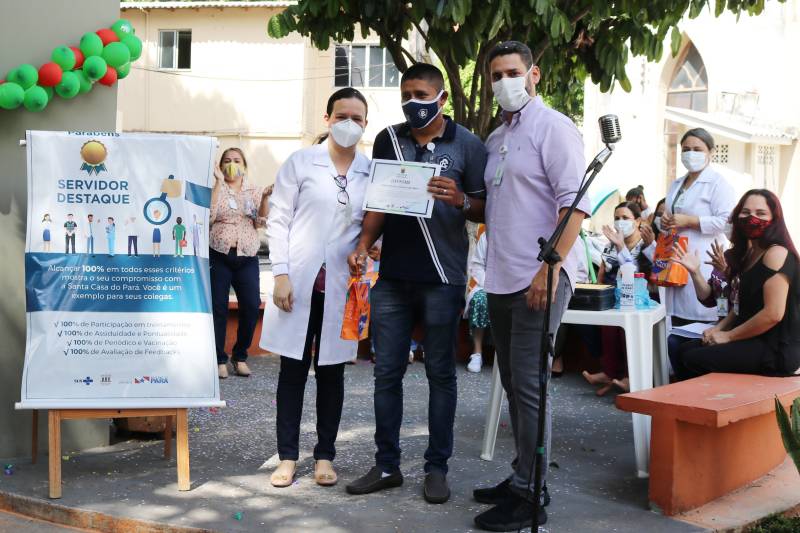 Cinco servidores foram escolhidos como destaqueA Fundação Santa Casa homenageou, nesta quarta-feira (30), na praça interna do hospital, cinco servidores que foram escolhidos como destaque. Os trabalhadores homenageados, mesmo diante da pandemia da Covid-19, mostraram comprometimento e dedicação com a instituição, alcançando 100% dos critérios de assiduidade e pontualidade, periódicos e vacinação, avaliação de feedback e participação em treinamentos.