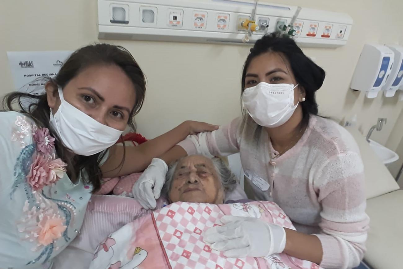 Uma das pacientes mais idosas atendidas no Hospital Abelardo Santos, dona Raimunda Amorim, de 99 anos, teve Covid-19 e com o atendimento dos médicos junto a equipe multiprofissional da UTI da Unidade, se recuperou e pode comemorar junto à família a chegada do centenário, no dia 30 de agosto.