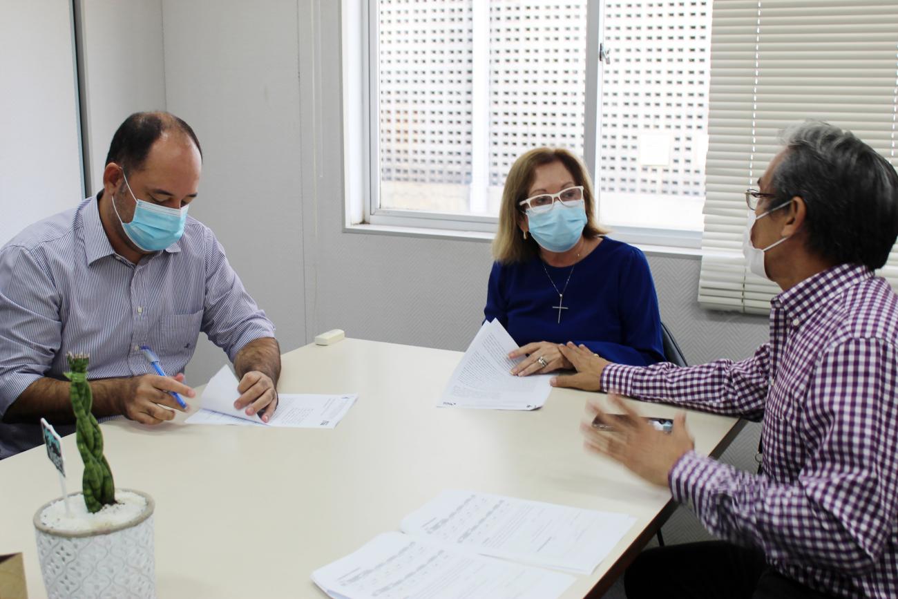 A diretora Ivete Vaz, com os secretários Ruy Cabral, da Saúde, e Rômulo Rodovalho, de Obras, firmam contrato para reforma estrutural