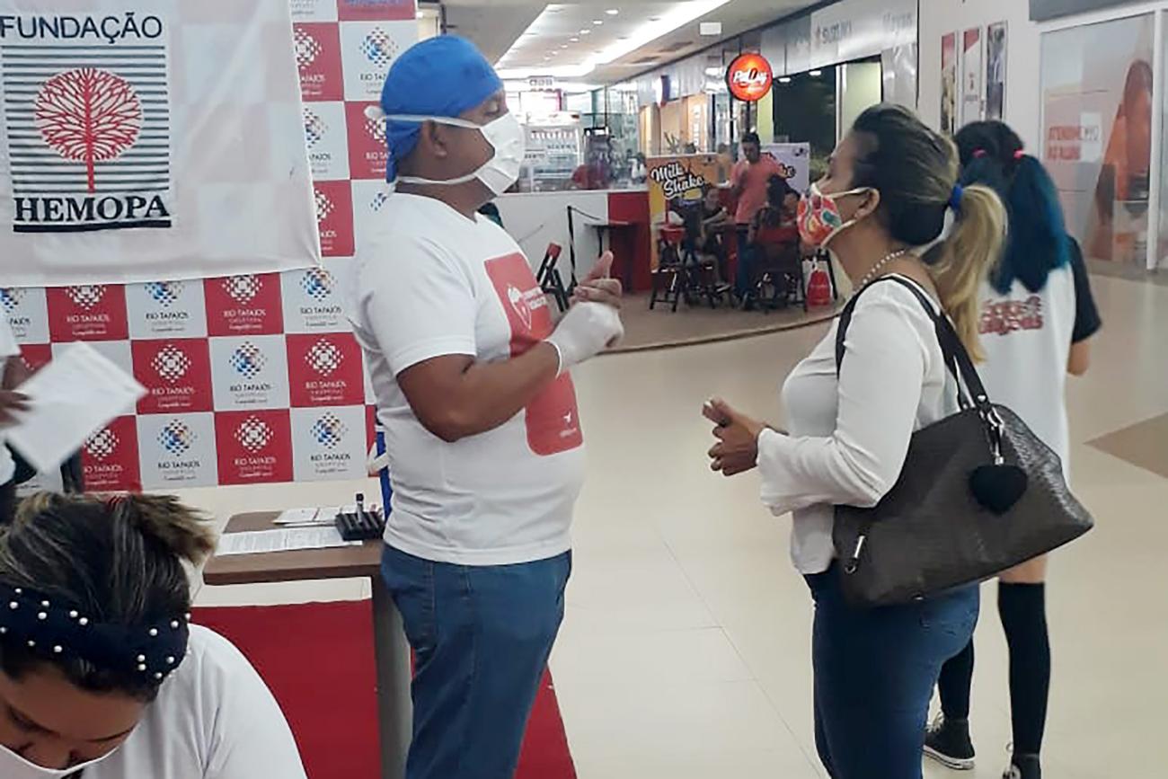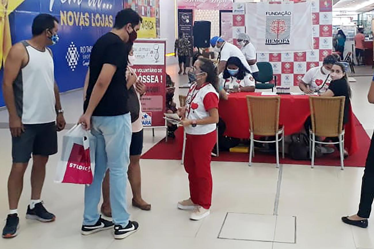 Em lojas do comércio e dos shoppings, servidores do hemocentro de Santarém conversam com o público sobre a atitude que salva vidas O atendimento transfusional é ininterrupto e por isso a necessidade de doadores voluntários é diária nas unidades de coleta de sangue da Fundação Hemopa.