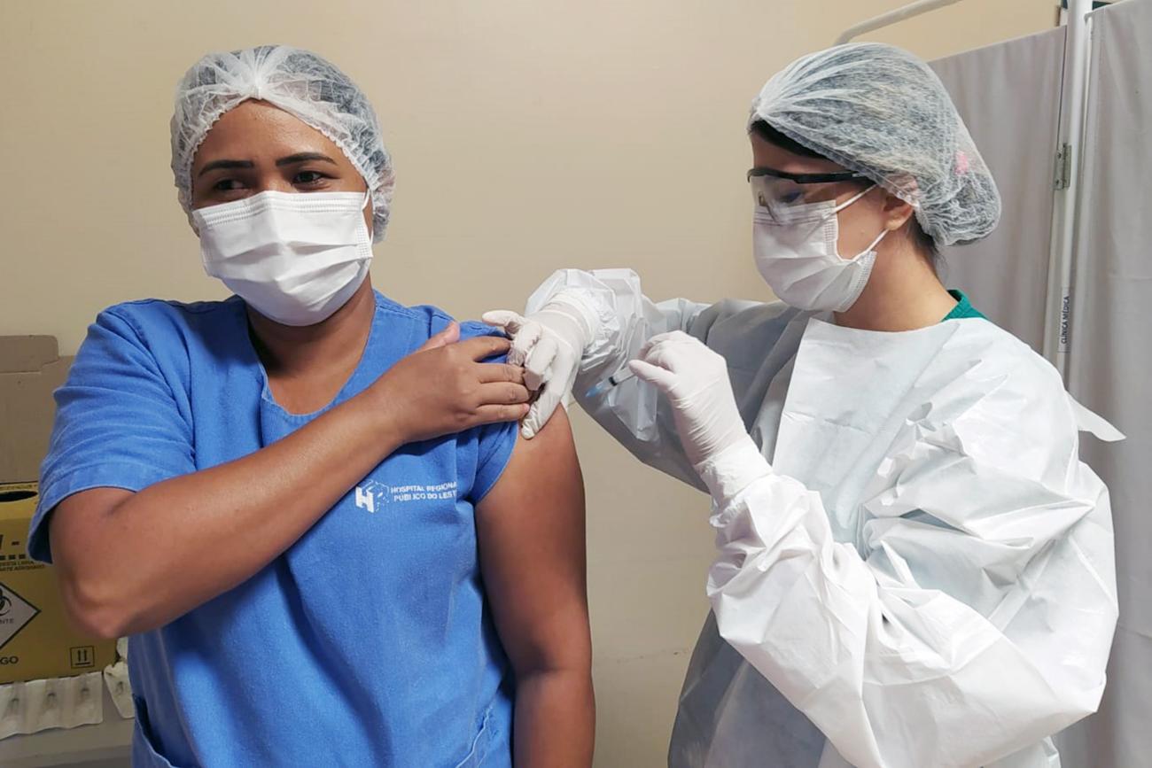 Colaboradores do Hospital Regional em Paragominas são vacinados contra a Covid-19