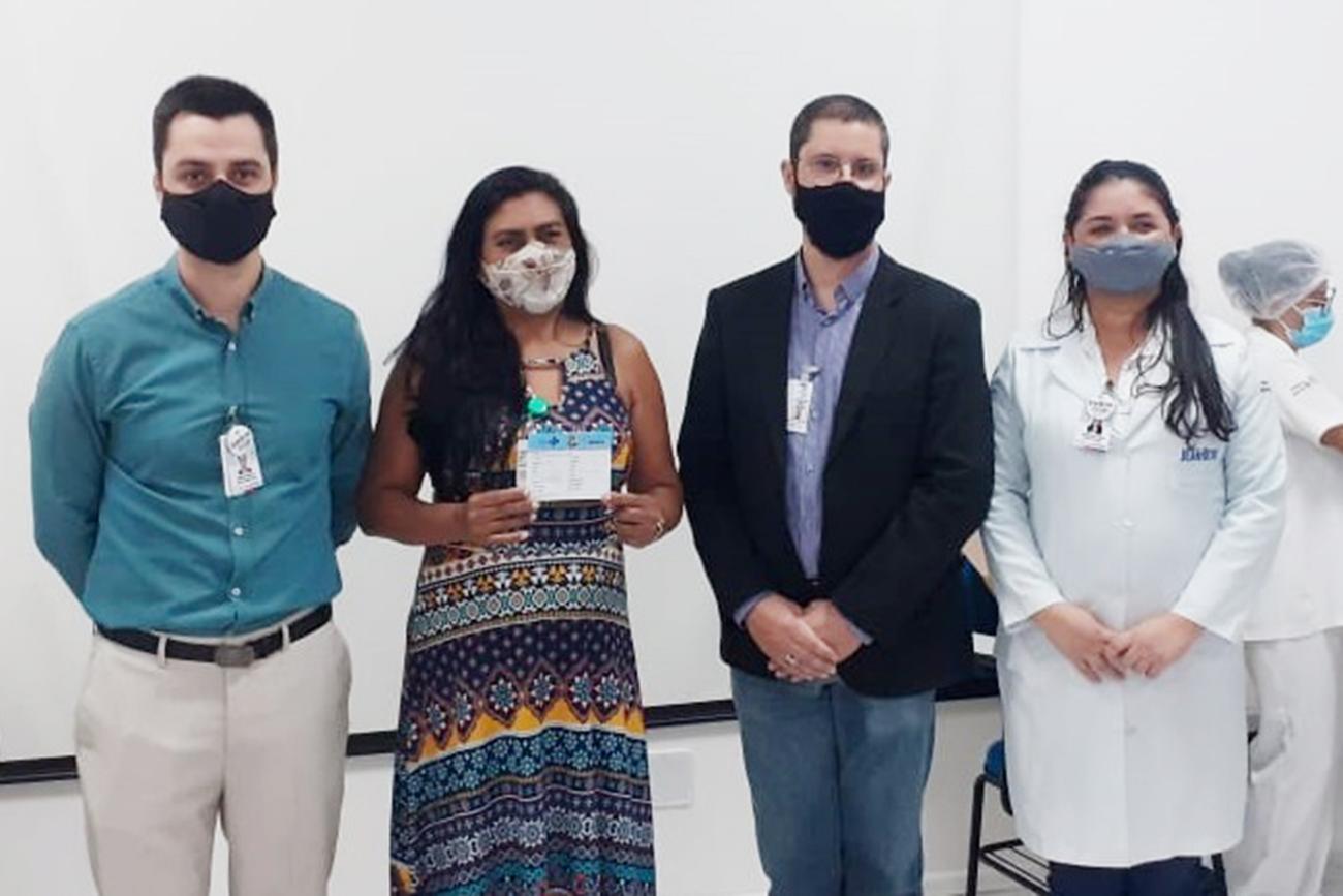 Colaboradores do Jean Bitar comemoram a vacinação contra a Covid-19