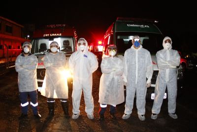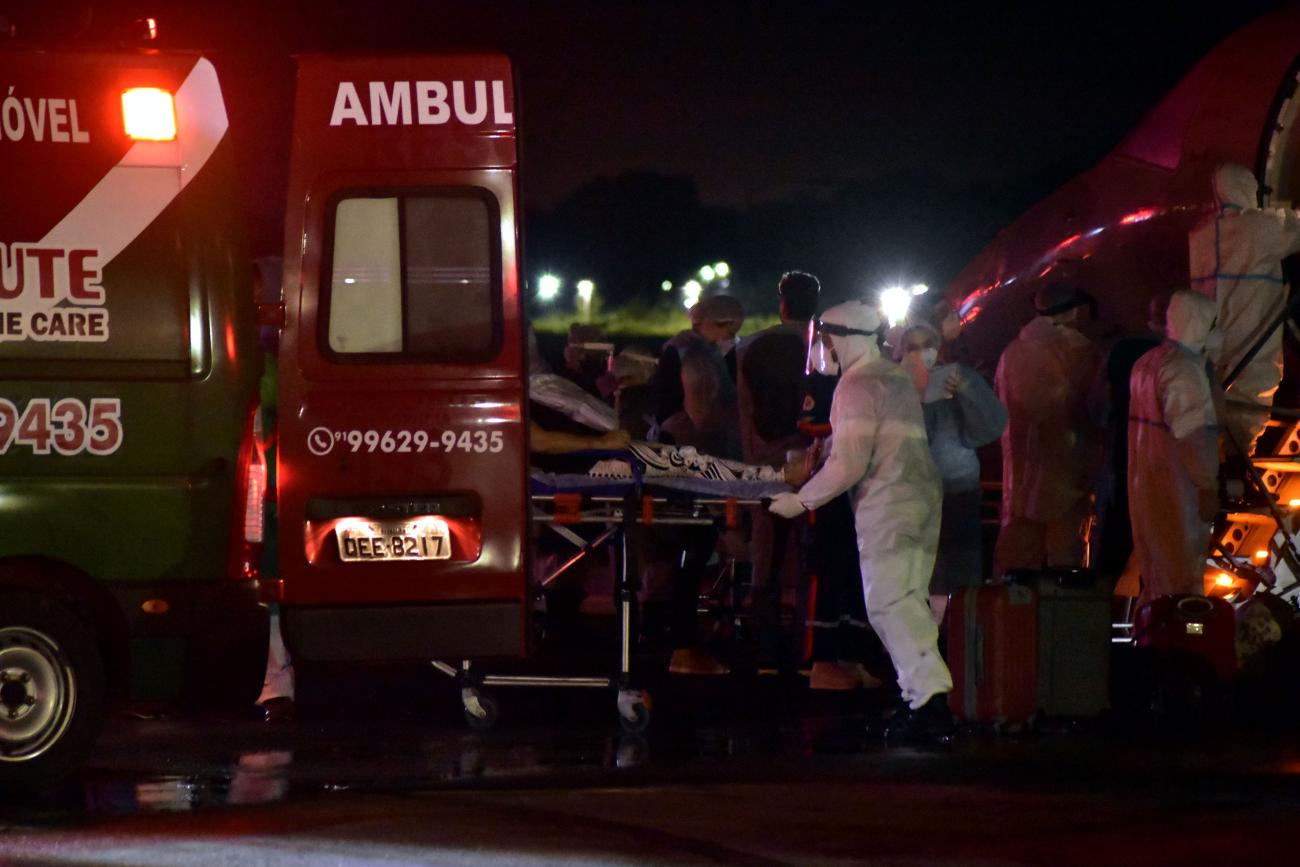 Onze ambulâncias já os esperavam no Complexo Ala 9 da Base Aérea, no bairro da Pratinha, para encaminhá-los ao Hospital. Eles foram recebidos por profissionais voluntários do Samu (Serviço de Atendimento Móvel de Urgência), Polícia Militar, Corpo de Bombeiros Militar, médicos da equipe da UTI do Hospital de Campanha e equipe de ambulâncias da iniciativa privada, que auxiliaram no transporte.