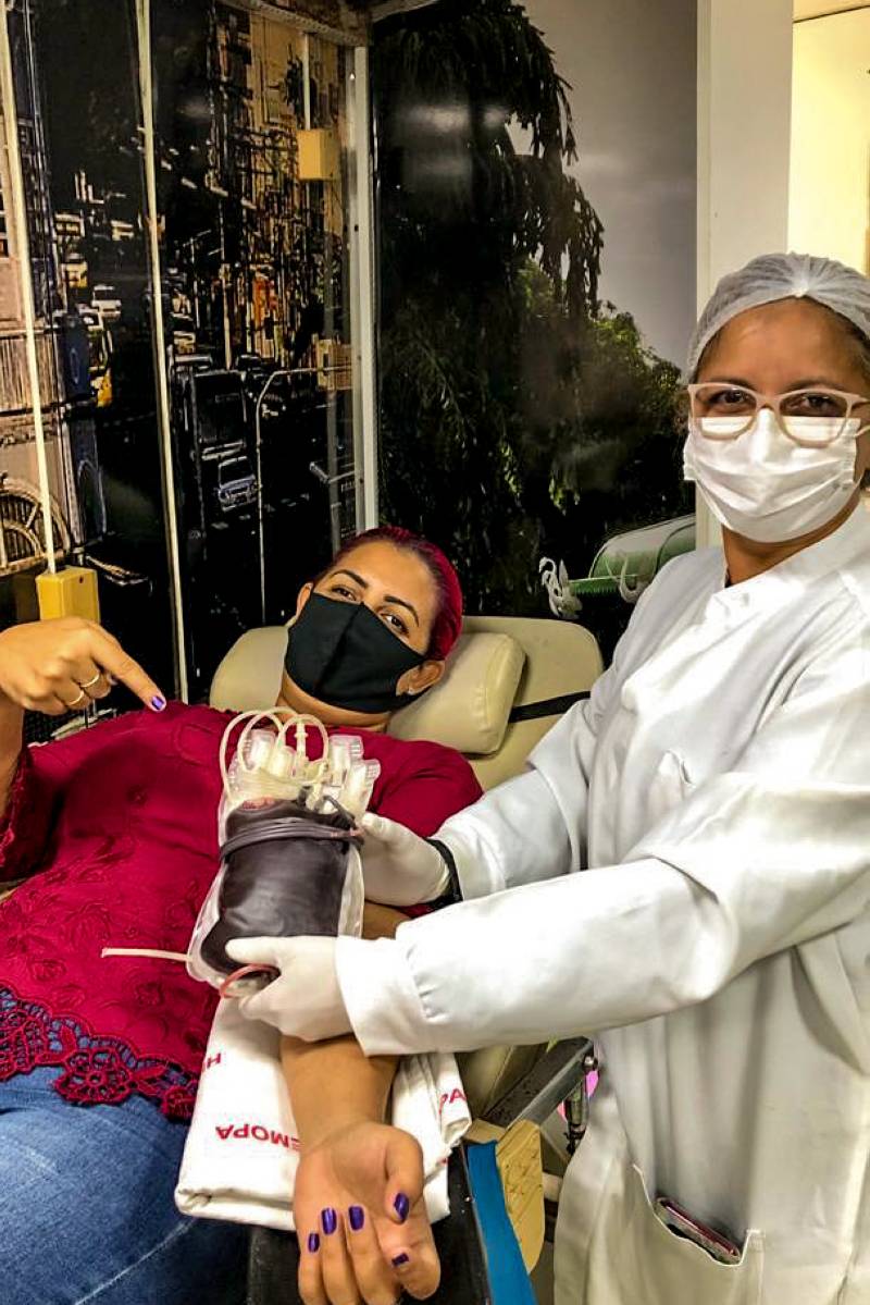 Regina Rodrigues de Sousa, 37 anos, é assistente social e conta, emocionada, que da primeira vez que tentou doar para um ente querido não conseguiu por estar anêmica. E desde então, cuida da saúde para poder ser uma voluntária presente na doação de sangue. "É como se eu tivesse doando um pouquinho de mim, de vida, para outras pessoas. Quando venho doar sempre trago mais duas ou três pessoas para doar junto".