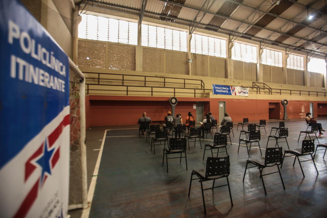 A Policlínica Itinerante do Núcleo de Esporte e Lazer (NEL), da Secretaria de Estado de Educação, registrou 1.989 atendimentos desde o dia 8 de fevereiro, quando aglutinou os serviços ofertados anteriormente na URE da Doca e UBS da Pedreira, em Belém. A mudança ocorreu para garantir maior conforto e segurança aos pacientes com suspeita de Covid-19, nesse período de maior incidência de chuvas.