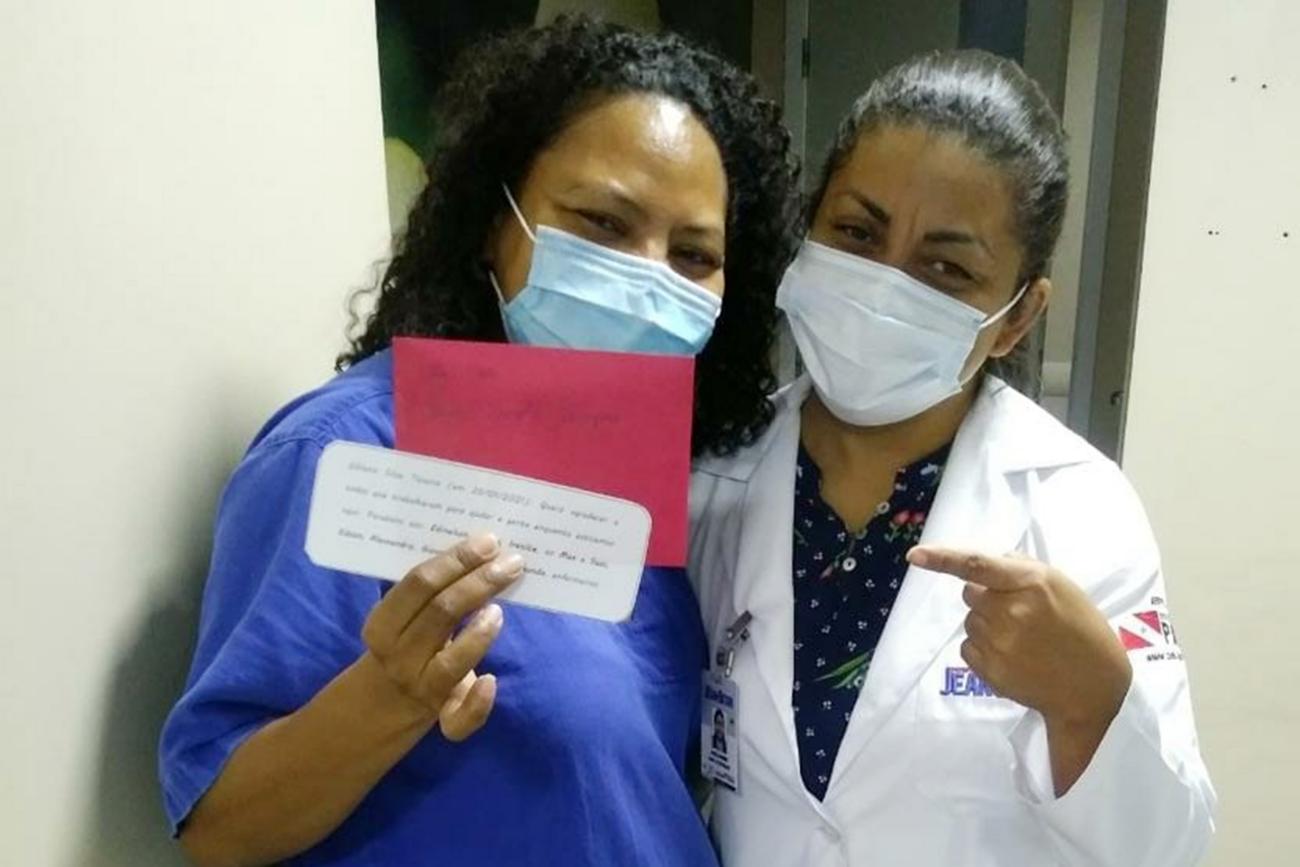 "Quero agradecer a todos que trabalharam ajudando a gente, enquanto estivemos aqui no Hospital Jean Bitar. Quero parabenizar, em especial, os profissionais: Edmilson, Franci, Iranilce, Max, Suzi, Edson, Alessandro, Giovani, Silas, Alexandre e o senhor Raimundos", citou a usuária Edilena Silva Tavares, se referindo a profissionais da Clínica Médica, Clínica Cirúrgica, CTI e Serviço de Controle de Infecção Hospitalar (SCIH).
