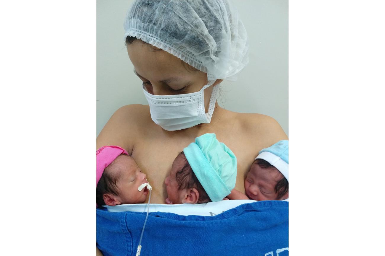 Sandra Costa registrou uma mãe com seus trigêmeos no colo, e foi com essa imagem que ela concorreu ao tema “A Vida é o maior presente”.