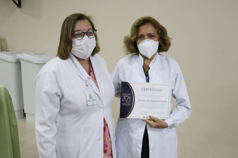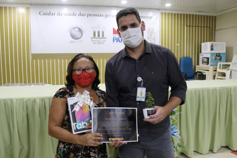 A enfermeira Nazaré Falcão, uma das servidoras escolhidas pelos usuários da Santa Casa, pelos bons serviços prestados, agradeceu e reconheceu a importância de trabalhar em prol dos usuários do Sistema Único de Saúde (SUS). Ela atua no Ambulatório da Mulher e disse que as mulheres que buscam o atendimento precisam de atenção e carinho dos servidores.