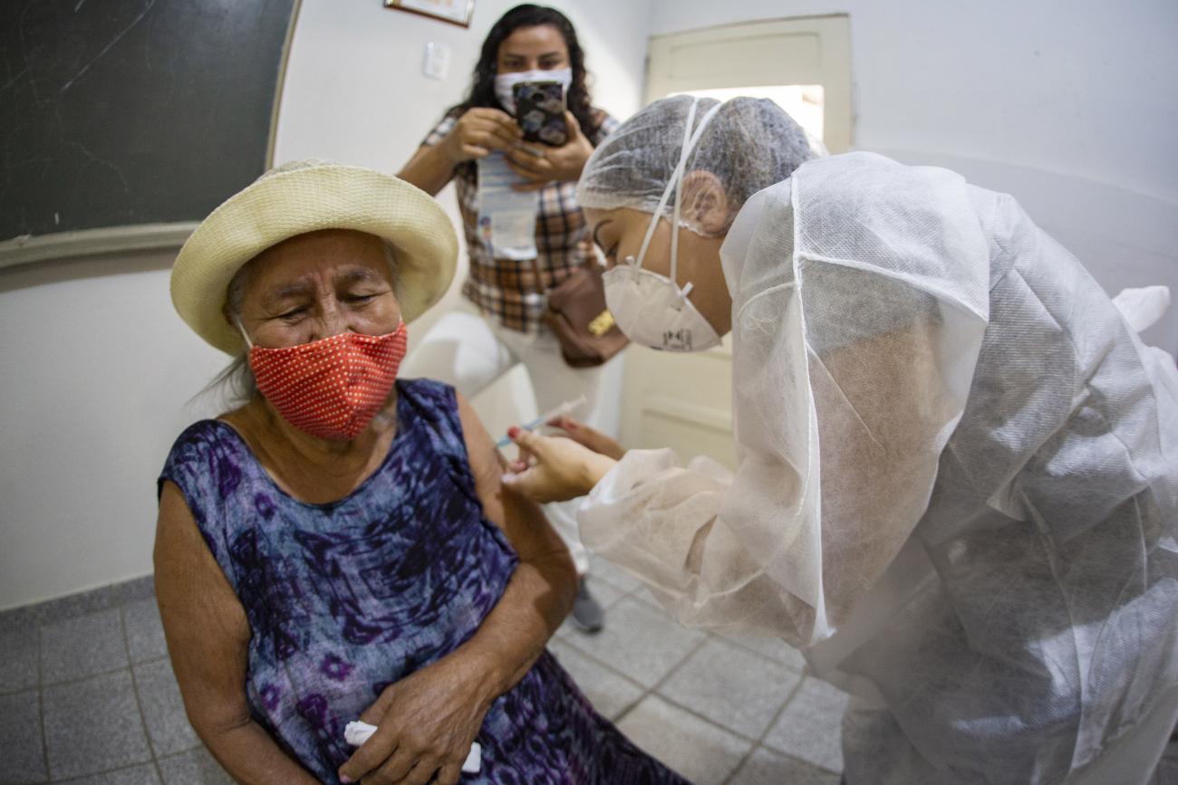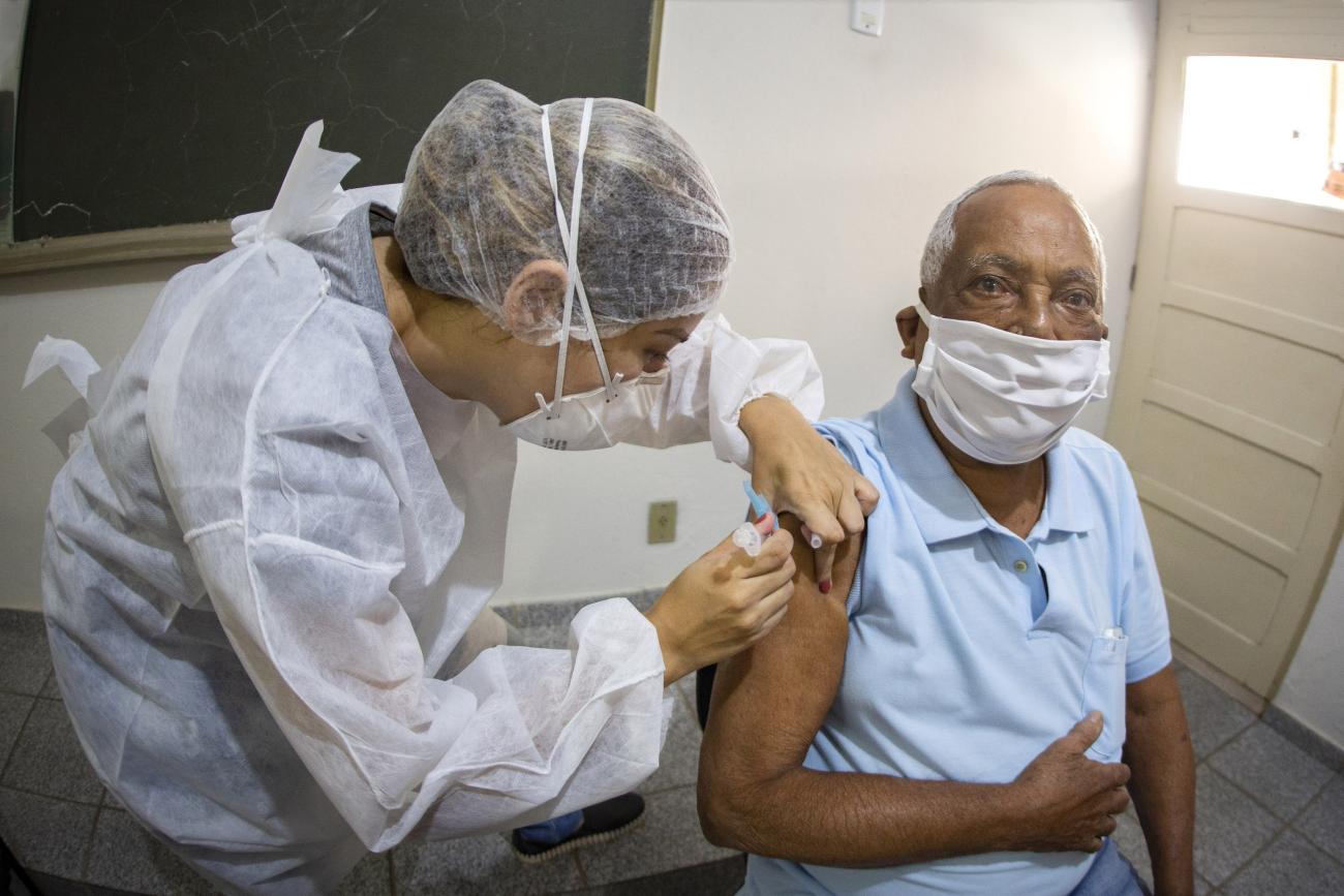 Idosos recebem a segunda dose da vacina contra a Covid-19