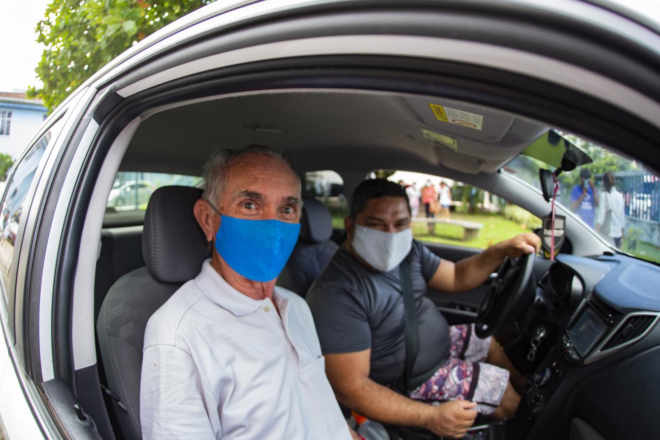 Luiz Wanzeler aproveitou o sistema drive-thru para levar a vizinha, Nazaré Feijó, para tomar a segunda dose. “A minha vizinha tem 86 anos e mora sozinha, então eu e minha família temos ajudado com as compras para ela, desde o início da pandemia. Quando começou a vacinação, trazer ela também era uma forma de contribuir, uma forma de ajudar para que as pessoas não se contaminem”. A vizinha elogiou a atitude solidária: “vizinho maravilhoso, minha salvação!”.