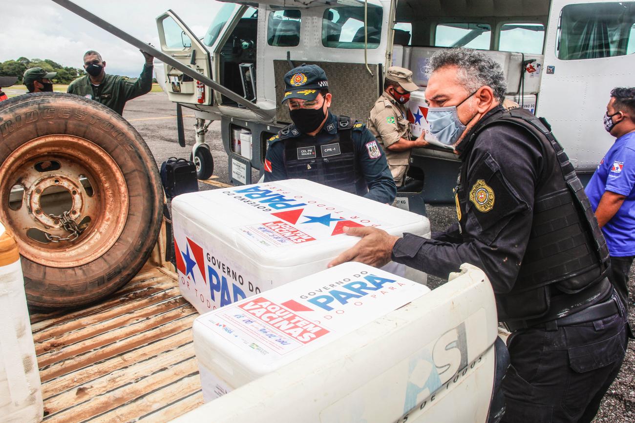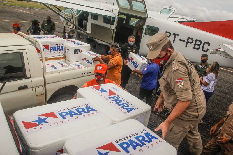 Do Centro Regional de Saúde em Santarém, vacinas serão distribuídas para imunização de idosos e dos agentes de saúde e segurançaOs imunizantes chegaram com escolta policial e seguiram do aeroporto para o Centro Regional de Saúde, onde serão inspecionados e, em seguida, distribuídos aos municípios de Alenquer, Almeirim, Aveiro, Belterra, Curuá, Faro, Itaituba, Jacareacanga, Juruti, Mojuí dos Campos, Monte Alegre, Novo Progresso, Óbidos, Oriximiná, Placas, Prainha, Rurópolis, Santarém, Terra Santa, Trairão, Altamira, Anapu, Brasil Novo, Medicilândia, Pacajá, Porto de Moz, Senador José Porfírio, Uruará e Vitória do Xingu.