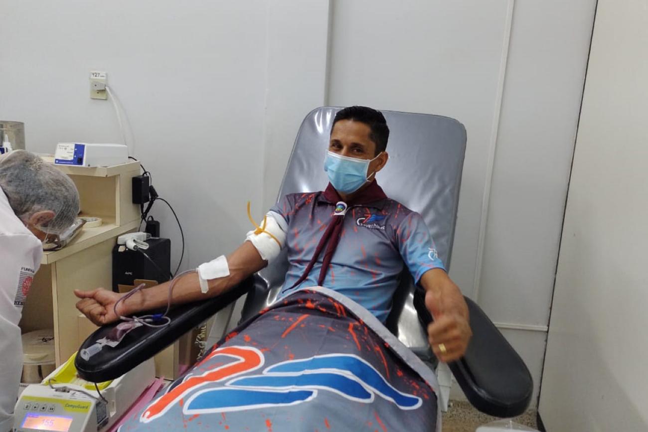 No Hemocentro Regional de Marabá, o doador Marcos Chaves repetiu o ato solidário junto com o seu grupo de amigos da Corrente do Bem de Itupiranga.