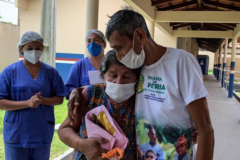 O reencontro da família de Sebastiana de Souza, após os pais vencerem a Covid-19Aberto há 45 dias, o hospital de campanha de Santarém, parceria do Governo do Estado e da prefeitura, alcançou a marca de mais de 200 altas. Os pais de Sebastiana de Souza, de 45 anos, venceram a Covid-19 após tratamento na unidade de saúde hospitalar.