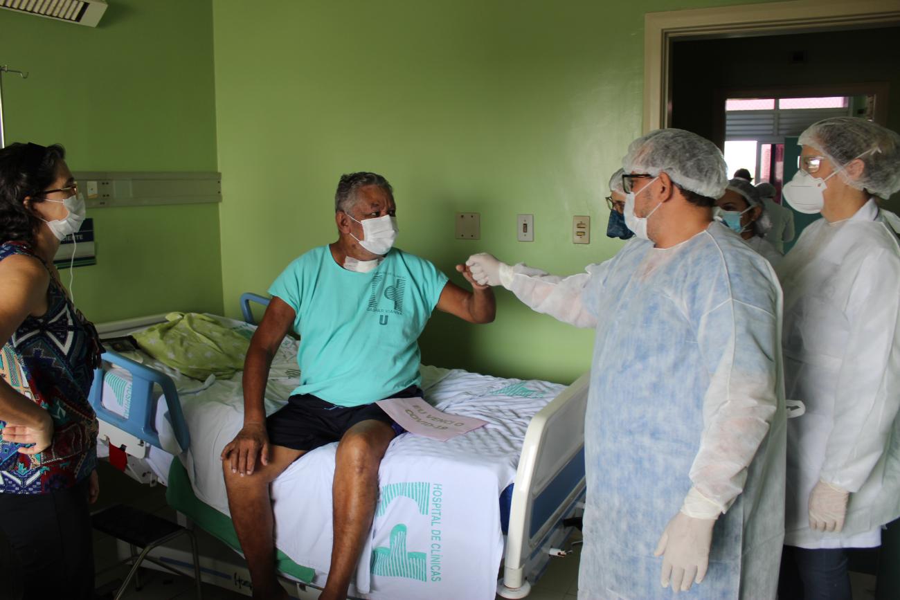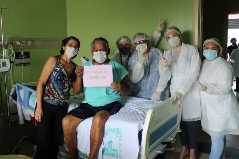 Luiz Farias, 63, foi um dos pacientes com Covid-19 atendidos pelo Hospital das ClínicasDurante os 15 dias em que o esposo Luiz Farias ficou intubado em uma das UTIs do Hospital de Clínicas, Tania Farias acompanhou de perto a dedicação dos profissionais pela recuperação do companheiro de 63 anos. “Chegamos aqui e eu sabia que ele seria intubado. Fiquei preocupada, mas sempre que via ele naquela posição, com aquelas proteções, agradecia a Deus por cada funcionário desse hospital. Quando ele acordou, foi um uma alegria imensa”, contou Tania.