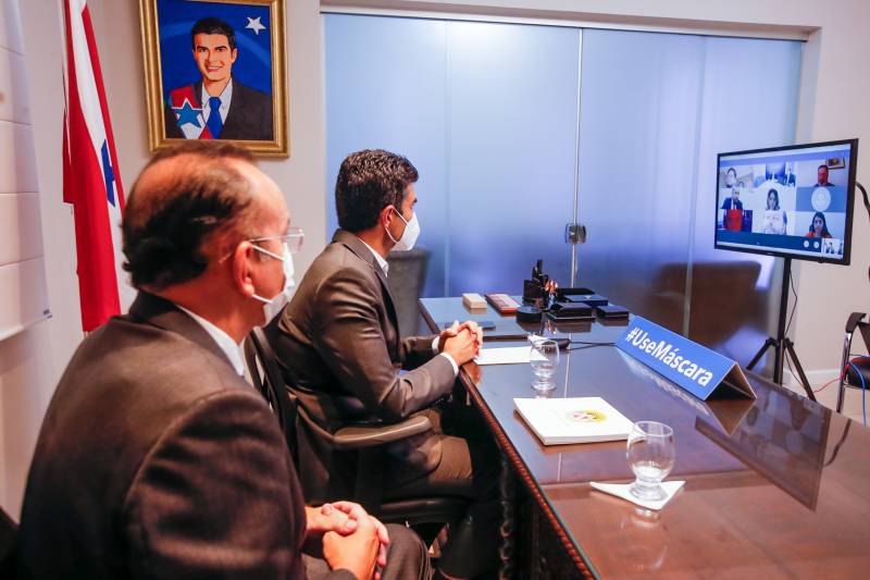 Helder Barbalho e o titular da Sedeme, José Fernando Gomes JrPor meio de videoconferência na manhã desta terça-feira (20), o governador do Estado, Helder Barbalho, participou de reunião com investidores russos para celebrar, em breve, um protocolo de intenções com objetivo de potencializar investimentos direcionados à primeira Zona de Processamento de Exportações (ZPE) do Pará, em Barcarena, nordeste do Estado. Os titulares da Companhia de Desenvolvimento Econômico do Pará (Codec) e da Secretaria de Estado de Desenvolvimento Econômico, Mineração e Energia (Sedeme) também estiveram na agenda de trabalho e destacaram as potencialidades portuárias do município.