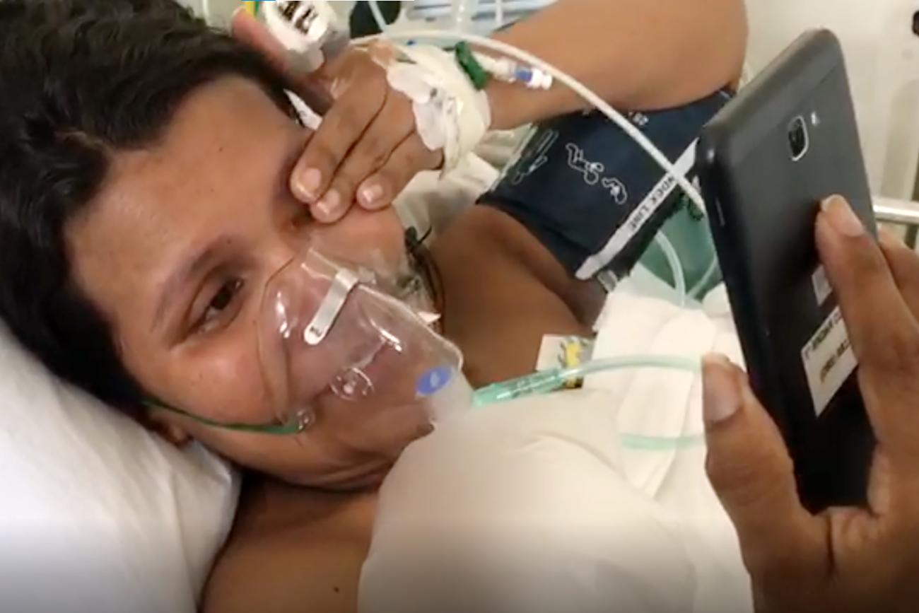 De um lado da chamada, o pai com a bebê no colo deu forças para a esposa se manter firme e disse que estavam aguardando por ela. “Isso [videochamada] é para você ter mais forças aí. Não se preocupe que logo ela estará nos seus braços”, disse Tassio, emocionado, que na ocasião estava há 11 dias sem ver a esposa.