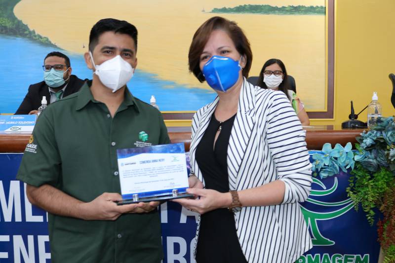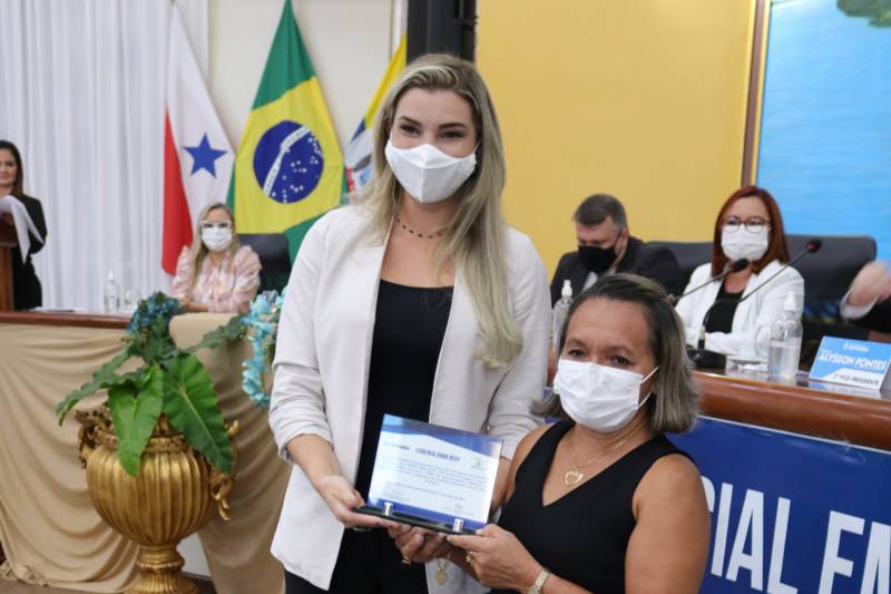 Técnica em enfermagem Doreni Mota Silva sendo homenageada pelos parlamentares de SantarémA técnica em Enfermagem Doreni Mora Silva e o enfermeiro Edilson Pires Barbosa, profissionais que atuam no Hospital Regional do Baixo Amazonas (HRBA), foram homenageados pela Câmara de Vereadores de Santarém, na tarde de terça-feira, 11. Na sessão especial em comemoração ao Dia Internacional da Enfermagem, lembrado nesta quarta-feira (12), os profissionais foram agraciados com a comenda Anna Nery – pioneira da Enfermagem no Brasil.