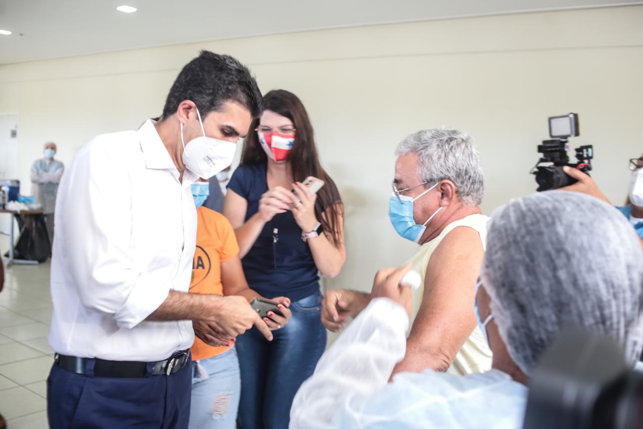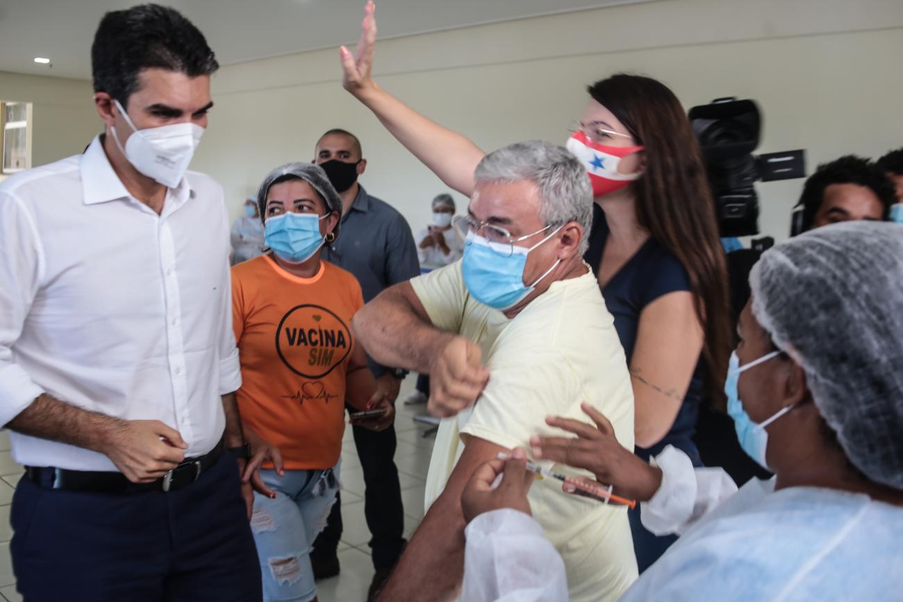 O governador do Estado, Helder Barbalho, visitou o Centro de Convenções, acompanhou a vacinação das pessoas que estavam no local e parabenizou o trabalho de todos.