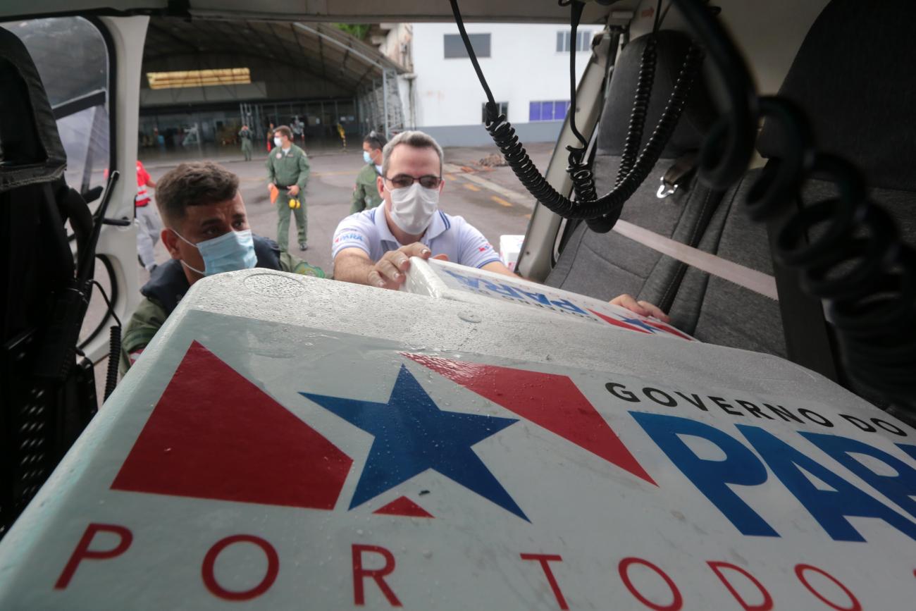 Iniciou neste sábado (19) a décima quarta fase de distribuição de imunizantes contra Covid-19 para o interior promovido pela Secretaria de Segurança Pública (Segup), por meio do Grupamento Aéreo de Segurança Pública (Graesp), em apoio logístico à Secretaria de Estado de Saúde (Sespa). A operação será concluída neste domingo (20), contemplando três regionais de saúde.