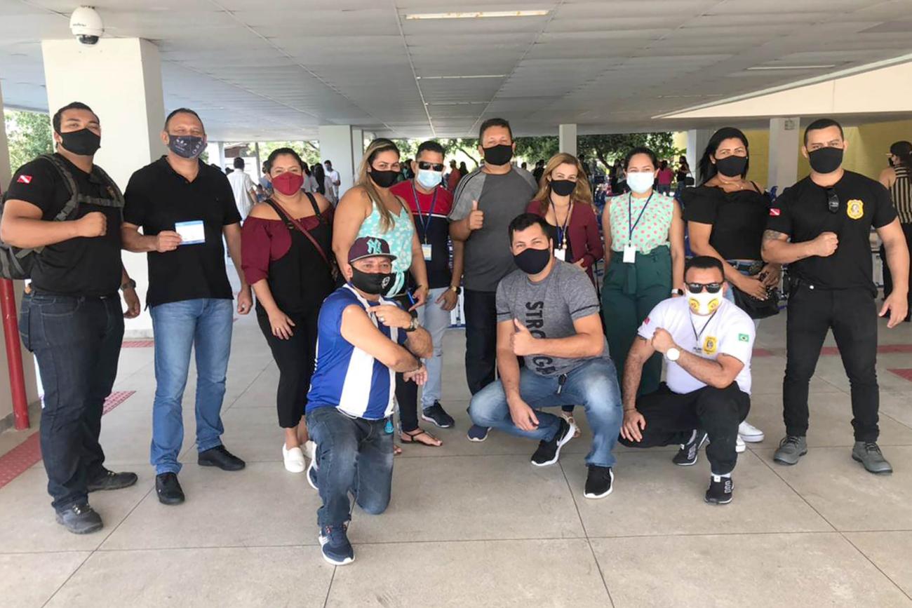 Servidores da Fasepa posam, animados, para a foto após serem vacinados com a primeira dose da Oxford/AstraZeneca, em BelémOs servidores da Fundação de Atendimento Socioeducativo do Pará (Fasepa) que trabalham em Belém foram vacinados contra a covid-19 com a primeira dose da Oxford/AstraZeneca, nesta quarta-feira (23), no Mirante do Rio, na Universidade Federal do Pará (UFPA), no bairro do Guamá. Nesta quinta-feira (24), será a vez dos servidores e dos socioeducandos da Unidade de Atendimento Socioeducativo (UASE) Benevides, na região metropolitana.
