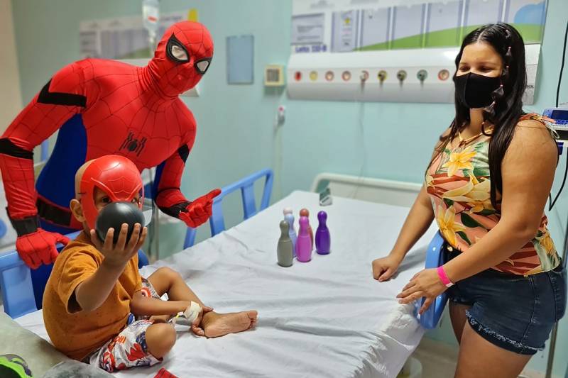 O empresário Fábio Evilázio, herói da solidariedade, contribuiu para levar momentos de alegria a MatheusEncontrar o super-herói preferido enquanto se luta, de forma heroica, contra um câncer, é o sonho que o Hospital Oncológico Infantil Octávio Lobo, em Belém, torna possível desde 2016, com o Projeto Super-Herói, realizado com o apoio de voluntários e todas as medidas de segurança previstas nos protocolos contra a Covid-19. Na sexta-feira (25), foi a vez do menino Matheus Marques, 3 anos, viver essa emoção.