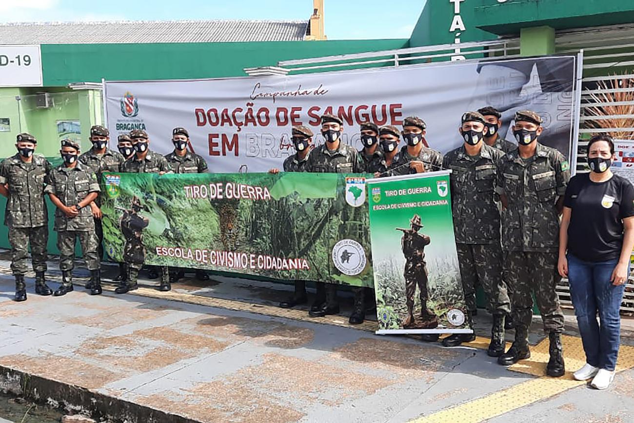 As parcerias com instituições públicas e privadas são importantes para o fortalecimento e a expansão do trabalho de hemoterapia realizado pela Fundação Hemopa. Uma instituição, que é sempre parceira da doação de sangue, é o Exercito Brasileiro. Homens que fazem parte do Tiro de Guerra de Bragança marcaram presença na campanha.Equipe do Tiro de Guerra de Bragança do Exercito Brasileiro é parceira do hemocentro e também doou sangue neste final de semana