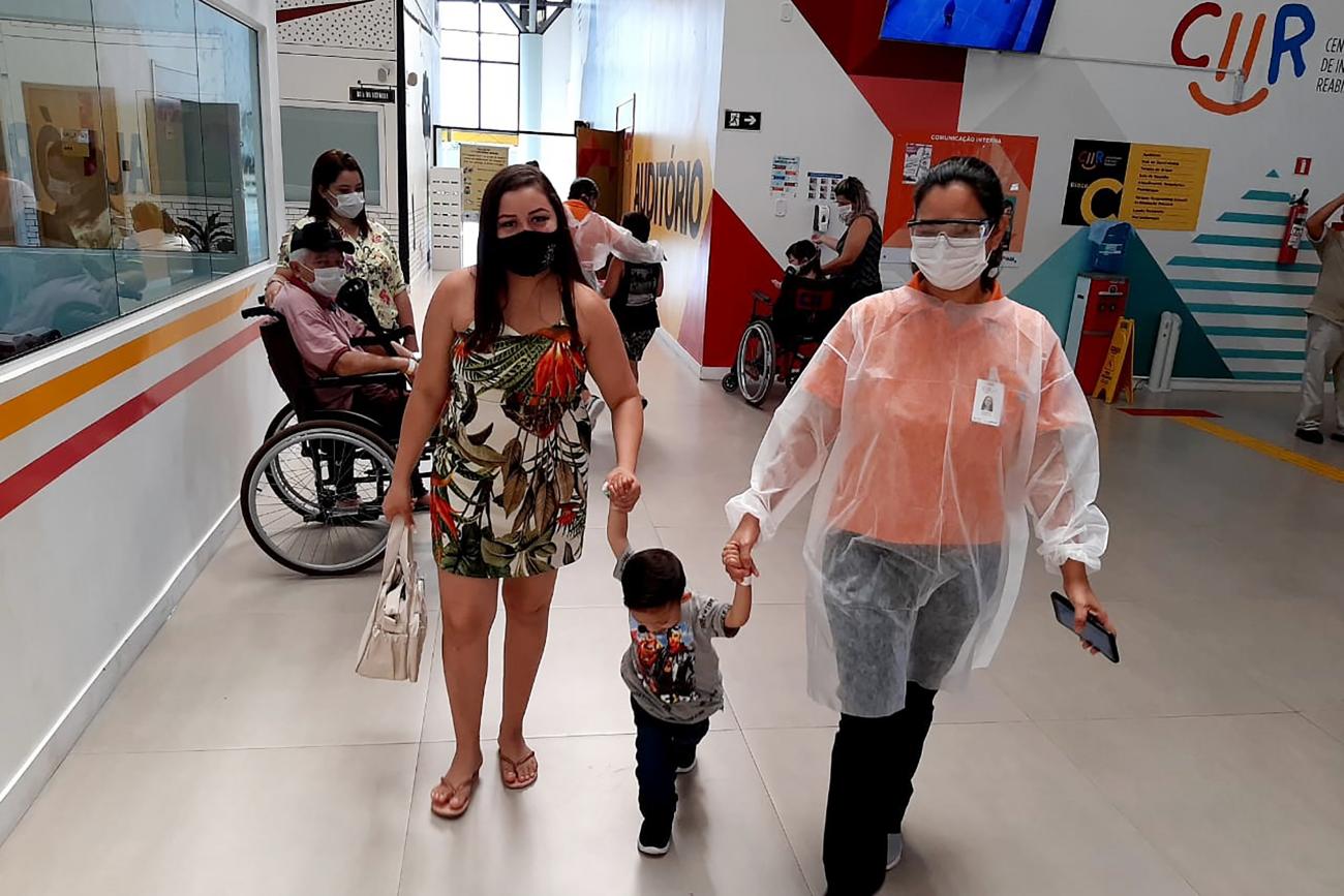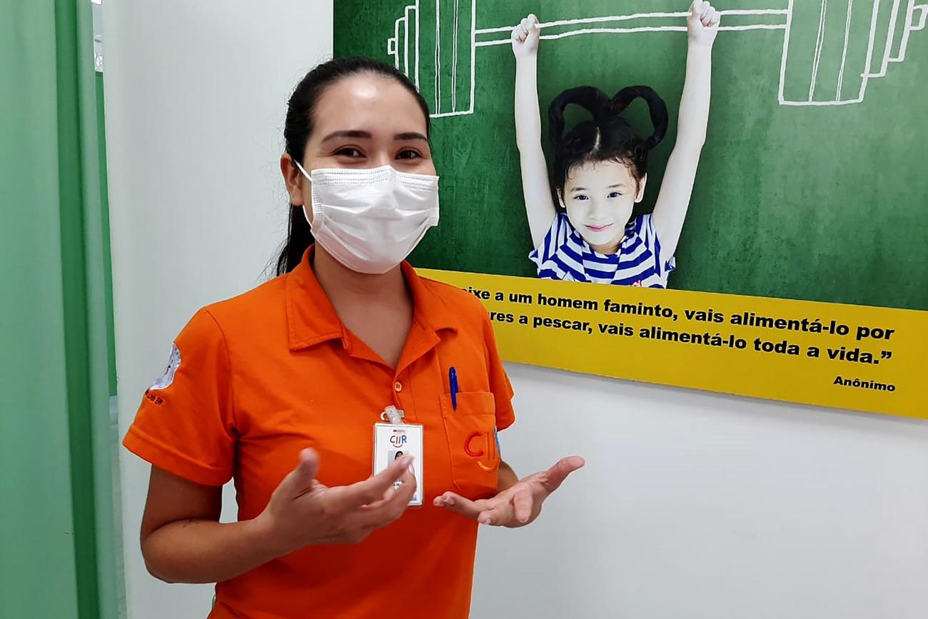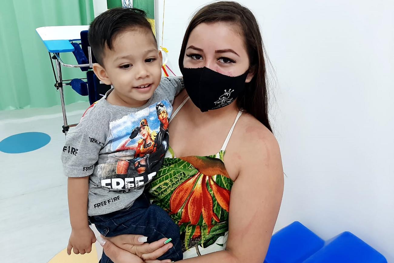 Maria Rosalina Castilho é mãe do paciente Uendison Salomão, que tem paralisia cerebral e é atendido pelo CIIR desde os 4 meses, por conta do comprometimento do desenvolvimento motor e da visão (baixa visão e estrabismo). Atualmente, com dois anos, a mãe comemora a evolução conquistada por ele com o tratamento.