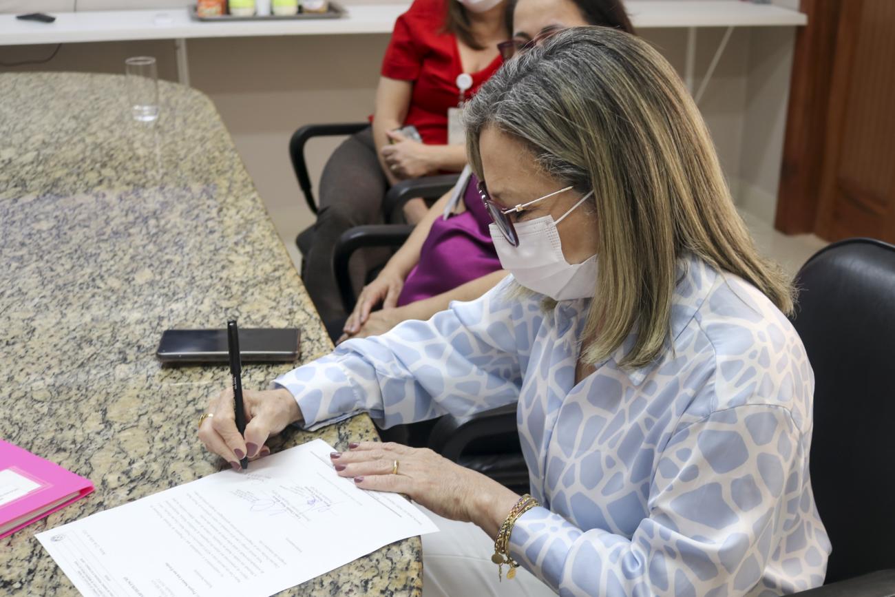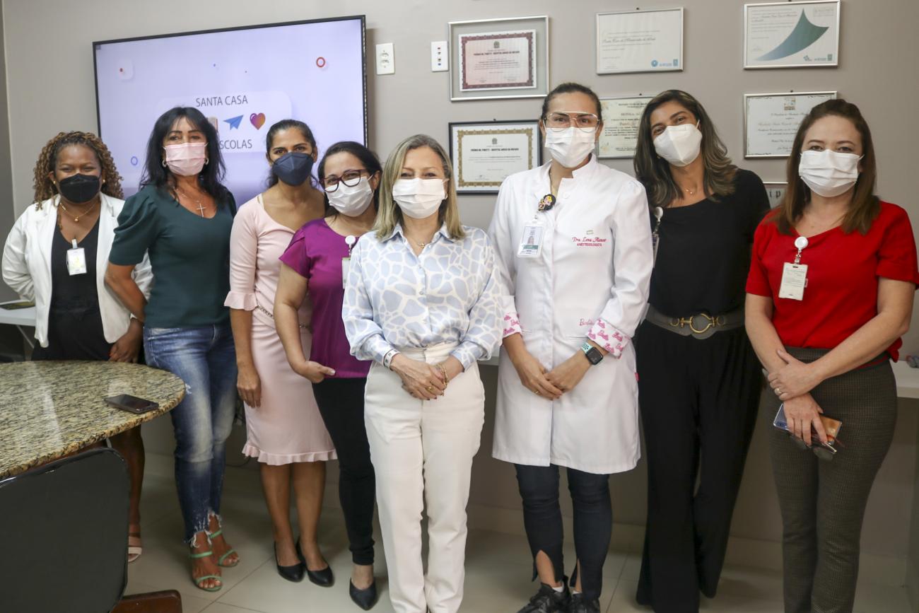 Participaram do encontro a diretora de Ensino, Pesquisa e Extensão da Santa Casa, Lena Cláudia Alencar, e a secretária estadual de educação, Elieth de Fátima Braga, junto com membros das equipes institucionais envolvidas na parceria.
