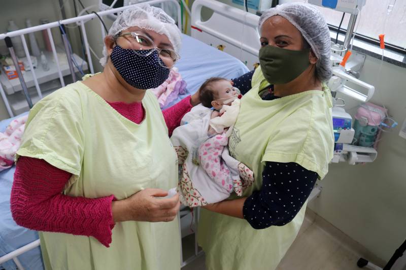 Helena e sua duas avós, dona Vera Lúcia Miranda de Castro e dona Lucilene Pantoja A avó, dona Vera, elogiou o atendimento humanizado que recebeu na instituição e agradeceu a toda a equipe pela melhora da neta. “Já estamos há mais de dois meses aqui, e essa é a quarta cirurgia que ela faz para que o alimento possa ir para o intestino e depois ser evacuado. Há dezessete dias ela fez a última cirurgia e o quadro dela é estável, mas já esteve muito grave mesmo, em situações de chamarem a gente para conversar e esperar o pior, pois ela estava respirando por aparelho".