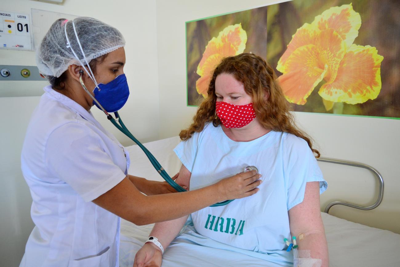 Profissional durante atendimento a paciente no HRBAÉ o que mostra um relatório divulgado recentemente pelo Ministério da Saúde com os resultados do projeto “Saúde em Nossas Mãos”. A iniciativa beneficiou 119 UTIs de hospitais localizados em todas as regiões do país, com a promoção de ações de prevenção a infecções relacionadas à ventilação mecânica, ao uso de cateter, sondas vesicais e intensificação da higienização das mãos.