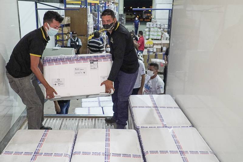 A remessa de Oxford/AstraZeneca chegou a Belém na madrugada desta quarta-feira
