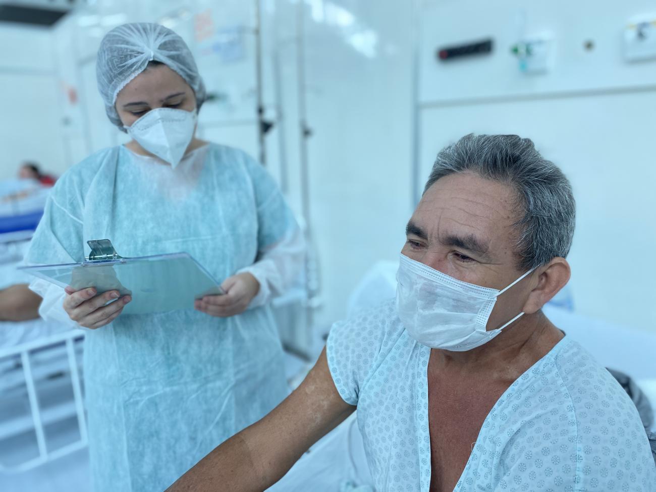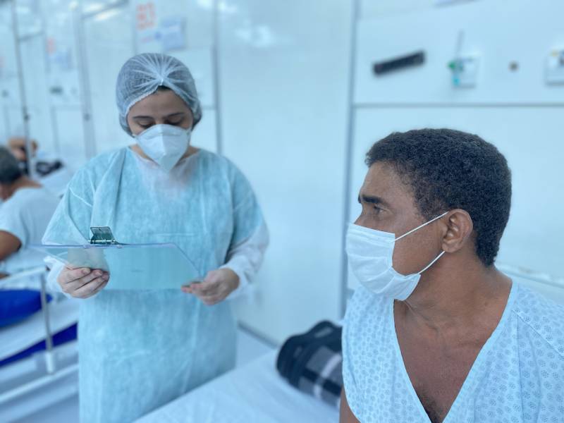 Psicóloga do Hospital de campanha leu a carta dos filhos para o paciente Teodorico Galiza