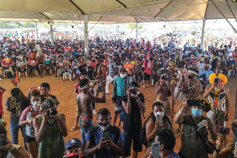 Mais de 6 mil representantes indígenas estão em Brasília em protesto contra a tese do "marco temporal" para demarcação de suas terrasMais de seis mil indígenas de mais de 170 povos de todo o Brasil estão em Brasília (DF) protestando contra o chamado marco temporal. Esse movimento dos povos tradicionais se dá em função de o Supremo Tribunal Federal iniciar, nesta quarta-feira (25), o julgamento que definirá o futuro das demarcações de terras indígenas no país.
