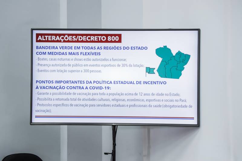 As novas medidas anunciadas consideram a redução dos casos de Covid-19 em território paraenseO Governo do Pará, por meio da Procuradoria-Geral do Estado (PGE) e da Secretaria de Estado de Saúde Pública (Sespa), anunciou nesta sexta-feira (27) o avanço nas medidas de flexibilização do Decreto Estadual 800/2020, que institui o sistema de bandeiramento em território paraense e as medidas de controle contra a Covid-19. Está autorizada a presença de público em eventos esportivos, inicialmente com a lotação máxima de 30% da capacidade dos ambientes, e ainda o funcionamento de boates, casas noturnas e casas de show, com a lotação máxima de 50% da capacidade destes estabelecimentos.