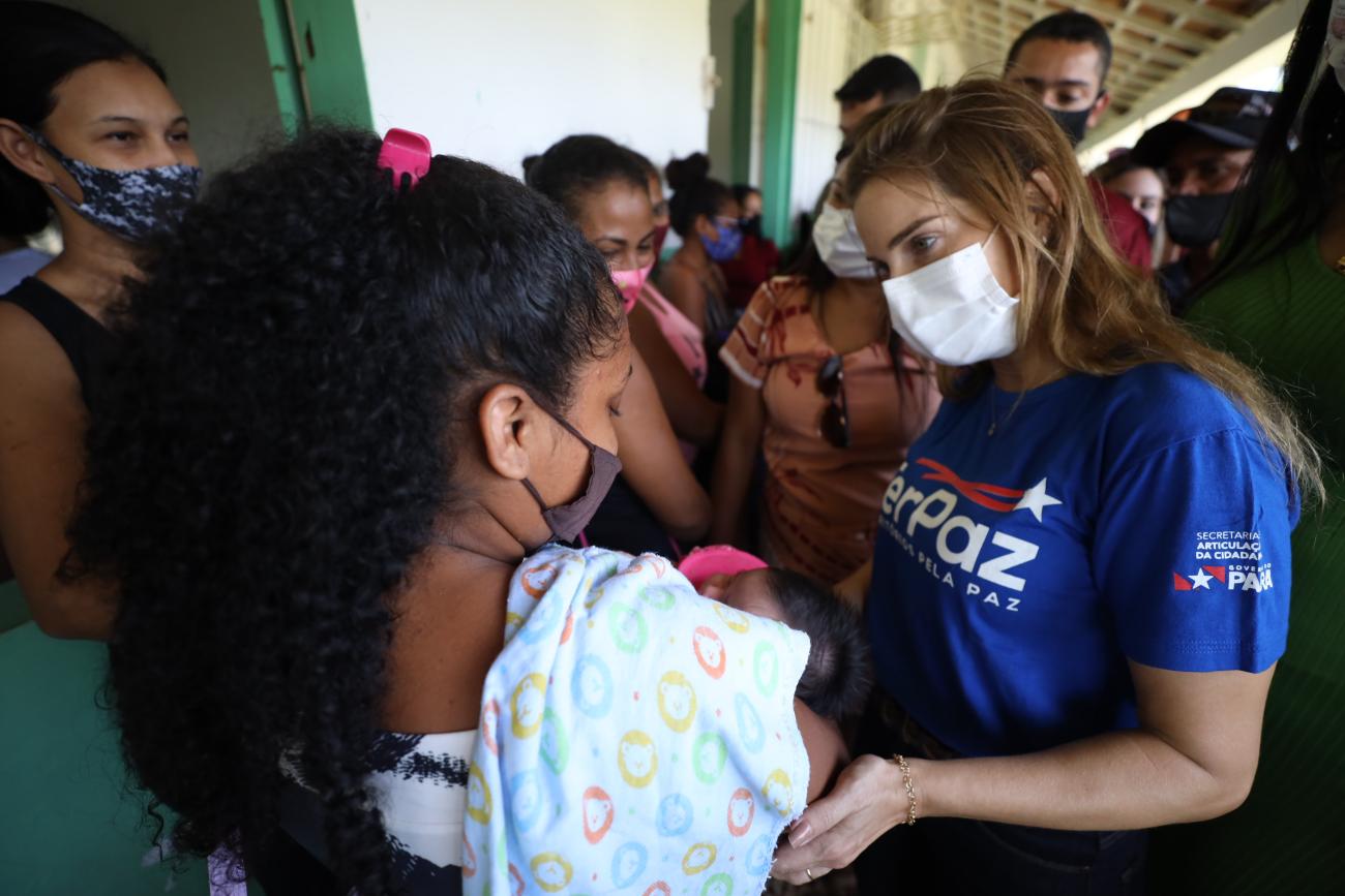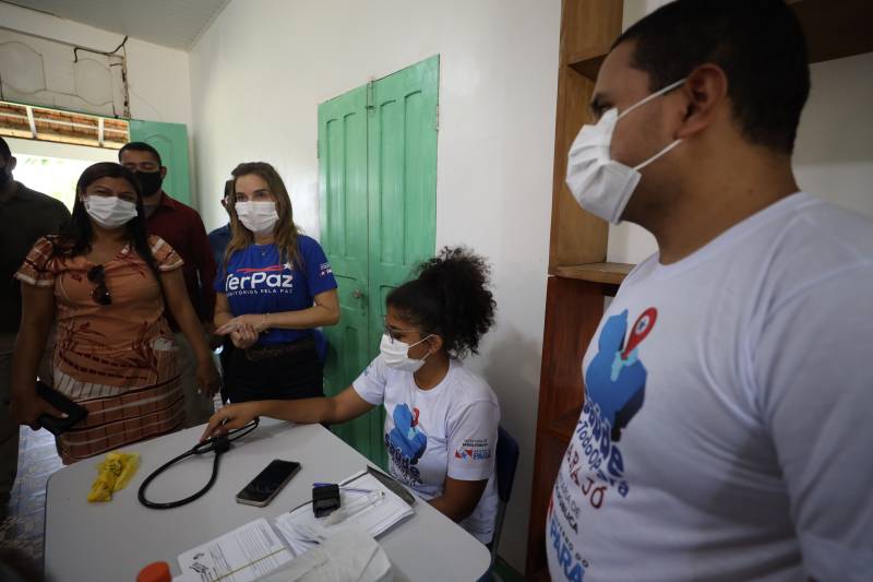 A primeira-dama do Pará, Daniela Barbalho, visitou o local dos atendimentos em Chaves e reforçou a importância do projeto para a população.
