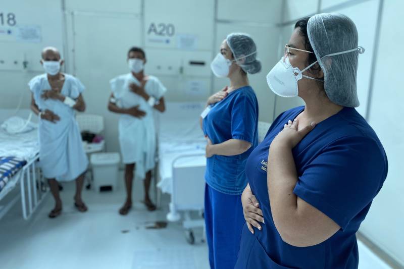 Com o objetivo de estimular o cuidado nos casos de estresse e medo no ambiente hospitalar, pacientes internados no Hospital de Campanha de Belém, no Hangar – Centro de Convenções, participaram nesta sexta-feira (3) do Projeto “Respirar para Melhorar”. A ação foi coordenada por profissionais de fisioterapia e psicologia da unidade, com a finalidade de amenizar os sintomas da ansiedade em pacientes da enfermaria.