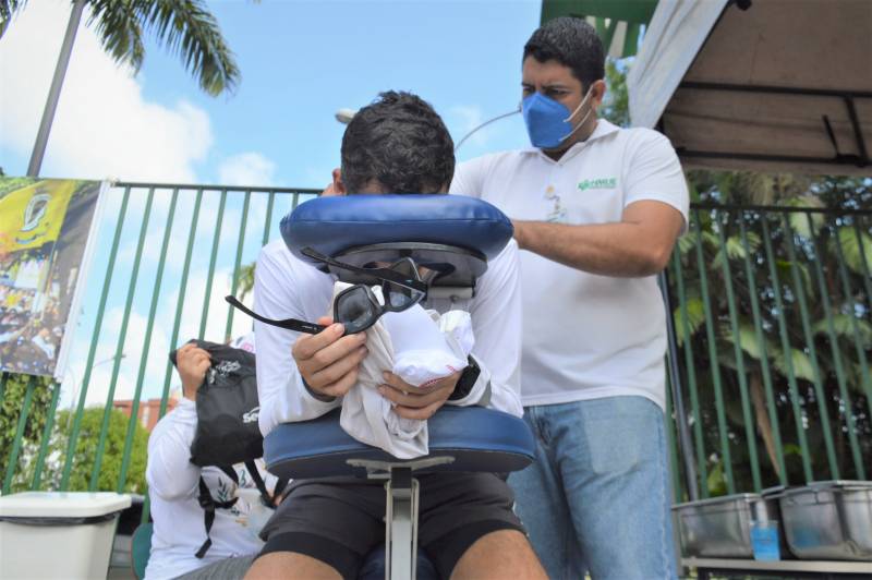 Além de atendimento médico, os fiéis passam por momento relaxante
