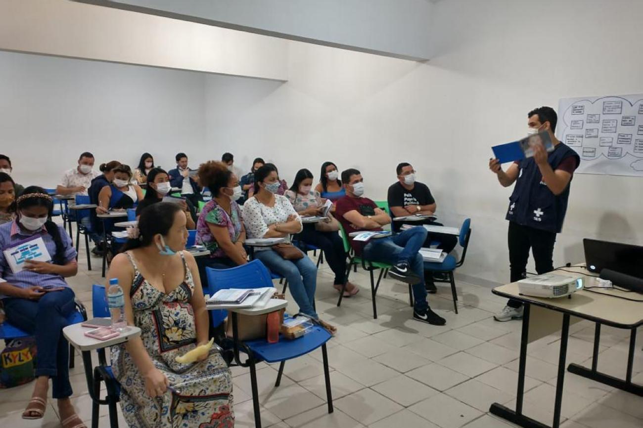 Nesse recomeço, a Sespa, com apoio da Opas, já formou 21 multiplicadores, que agora compõem o grupo de profissionais de saúde que atuam em oficinas de formação nos diversos municípios.
