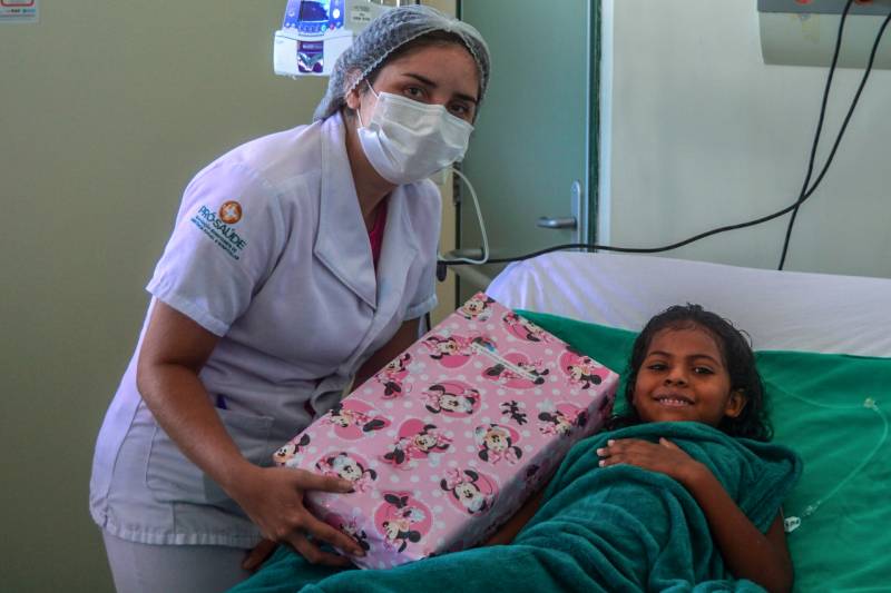“Estamos há oito dias internadas aqui no Hospital Regional para a Alice tratar um tumor na coxa e fazer quimioterapia. Quando ela viu as outras crianças ganhando presente, ficou muito alegre e logo perguntou se ganharia o dela. Ajuda muito no tratamento, porque ficam todos felizes”, agradeceu a mãe Jocimara Caetano Ramos.