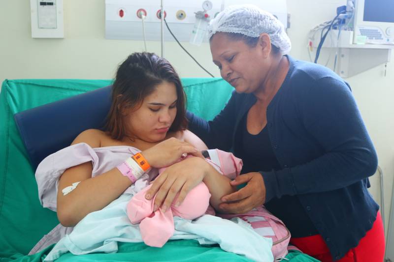 Eloá nasceu as 09h23 desta quarta-feira (13), de parto normal, no Centro Obstétrico (CO) da Fundação Santa Casa de Misericórdia do Estado do Pará (FSCMP), a maior maternidade pública do Norte do Brasil. No mesmo dia, Juliana Augusta Pinto, 19 anos, nervosa e cansada, também contava com o apoio da mãe, a doméstica Raimunda Claudia Barros, 45 anos, no momento pré-parto. “Mas eu sei que era muita gente ajudando”, contou Juliana, já deitada em um leito no Alojamento Conjunto (AC), enquanto amamentava seu bebê e mencionava o quanto o pai da criança, o estudante do ensino médio Wagner Felipe Nascimento, 18 anos, estava emocionado.
