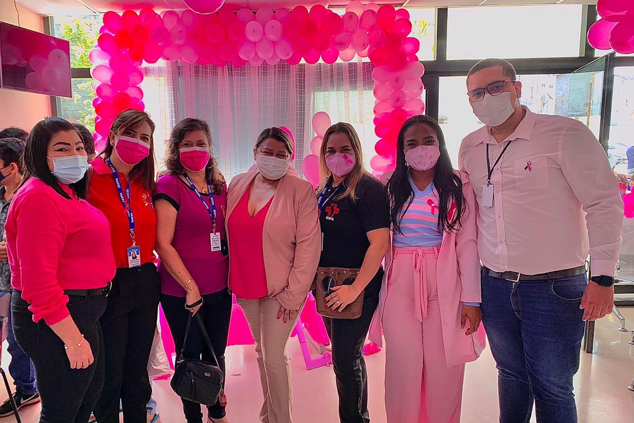 Equipe que participou do evento de encerramento da campanhaAlém das rodas de conversas, as abordagens individualizadas, lanche com bolo cor de rosa e as dinâmicas com os alunos de instituições de ensino que fazem estágio na unidade hospitalar, o “Abelardo Santos” disponibilizou exames de mamografia e consultas com mastologistas. O serviço já faz parte das especialidades do HRAS, com atendimentos via Rede Estadual de Regulação.