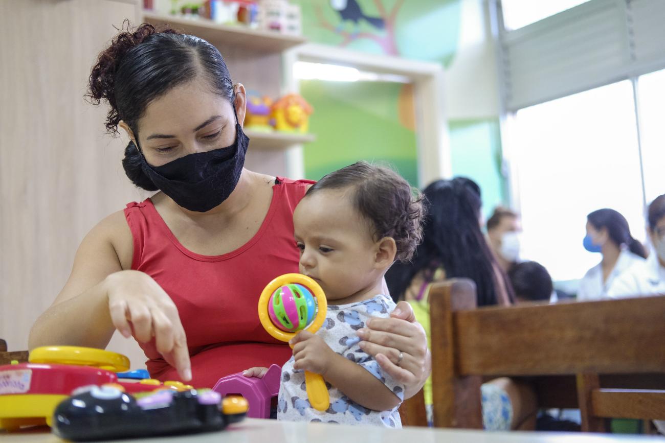 “Com quatro meses, comecei a perceber que ela ficava mais cansada que o normal, com o desenvolvimento muito lento. Viemos de Barcarena e encontrei no HC um atendimento maravilhoso, com profissionais atenciosos e preocupados. A brinquedoteca nos desestressa da rotina de hospital, que é realmente muito pesada. Aqui ela se sente a vontade, relaxa tanto que até dorme”, conta Jessica.